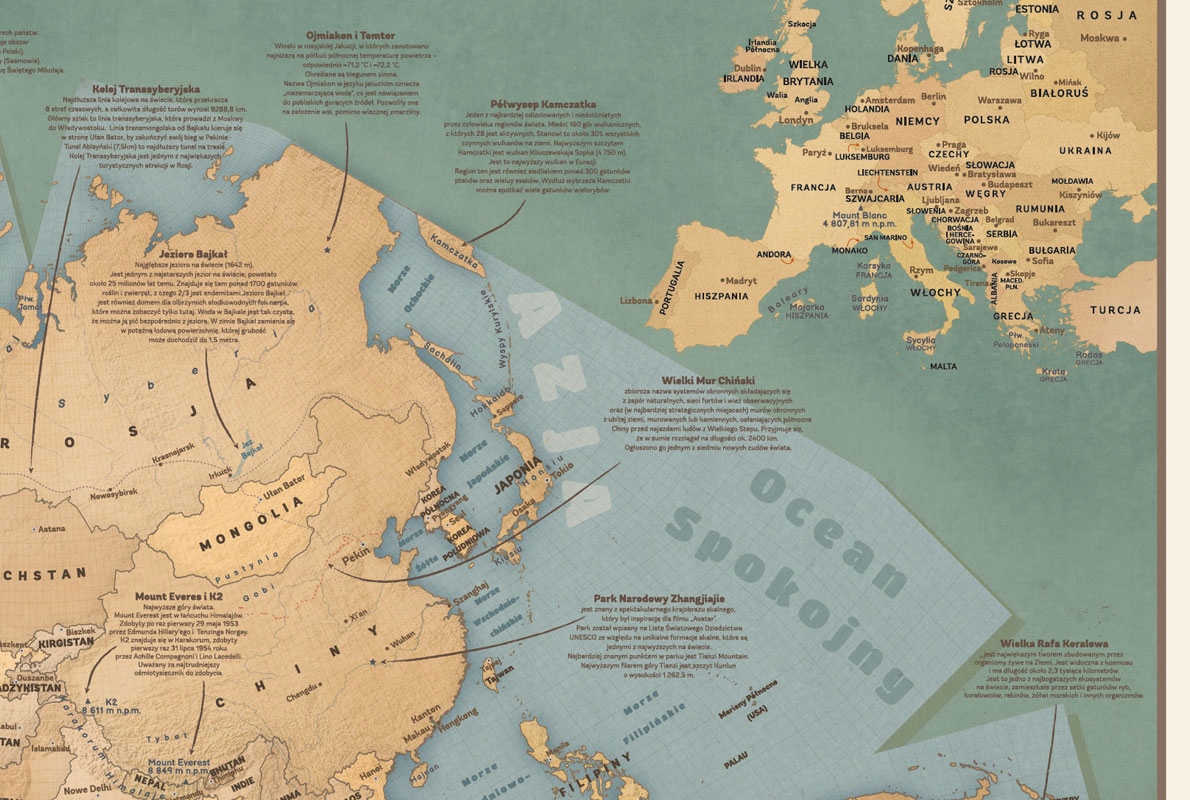 Ця карта також містить те, що фізична та політична карта, завдяки дивовижному відтворенню, представляє реальні пропорції країн та континентів та показує деякі найцікавіші місця в нашому світі. CM