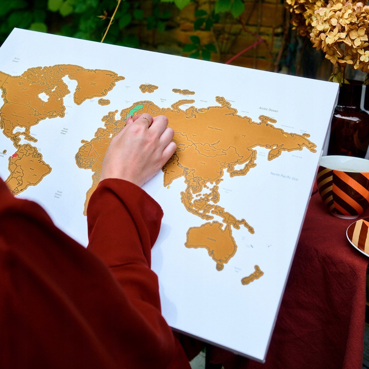 Шукаєте ідеальний подарунок для любителя подорожей? Скретч-карта HOMLA x NAOKO - чудовий вибір! Унікальний дизайн і можливість персоналізації роблять подарунок не тільки практичним, але й насиченим емоціями та спогадами. Це чудовий спосіб спланувати свої наступні пригоди. Точні контури країн і океанів дозволяють легко визначати місця на карті та чудово доповнюють будь-яке розташування.