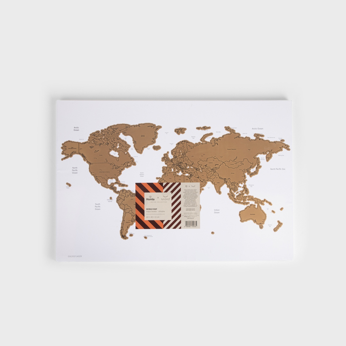 Карта HOMLA X NAOKO стає джерелом натхнення для подорожей, нагадуючи вам про місця, які ще чекають на відкриття. Це не тільки інтерактивна розвага, але й елегантний декоративний елемент, який додасть сучасного характеру будь-якому інтер'єру. Його мінімалістичний дизайн ідеально вписується в різні стилі аранжування, і водночас привертає увагу та створює чудову розмову про подорожі.