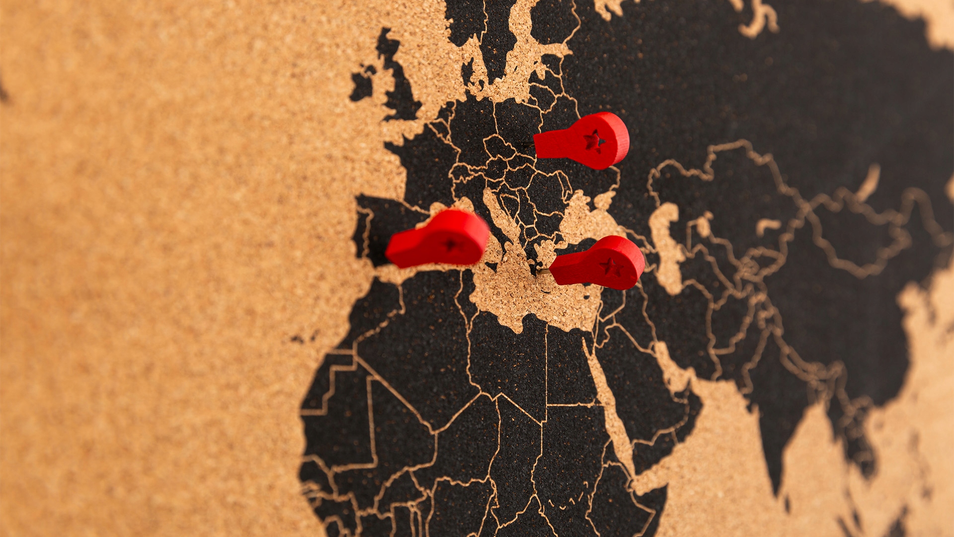 Пробкова дошка з картою світу, може бути використана в багатьох місцях: