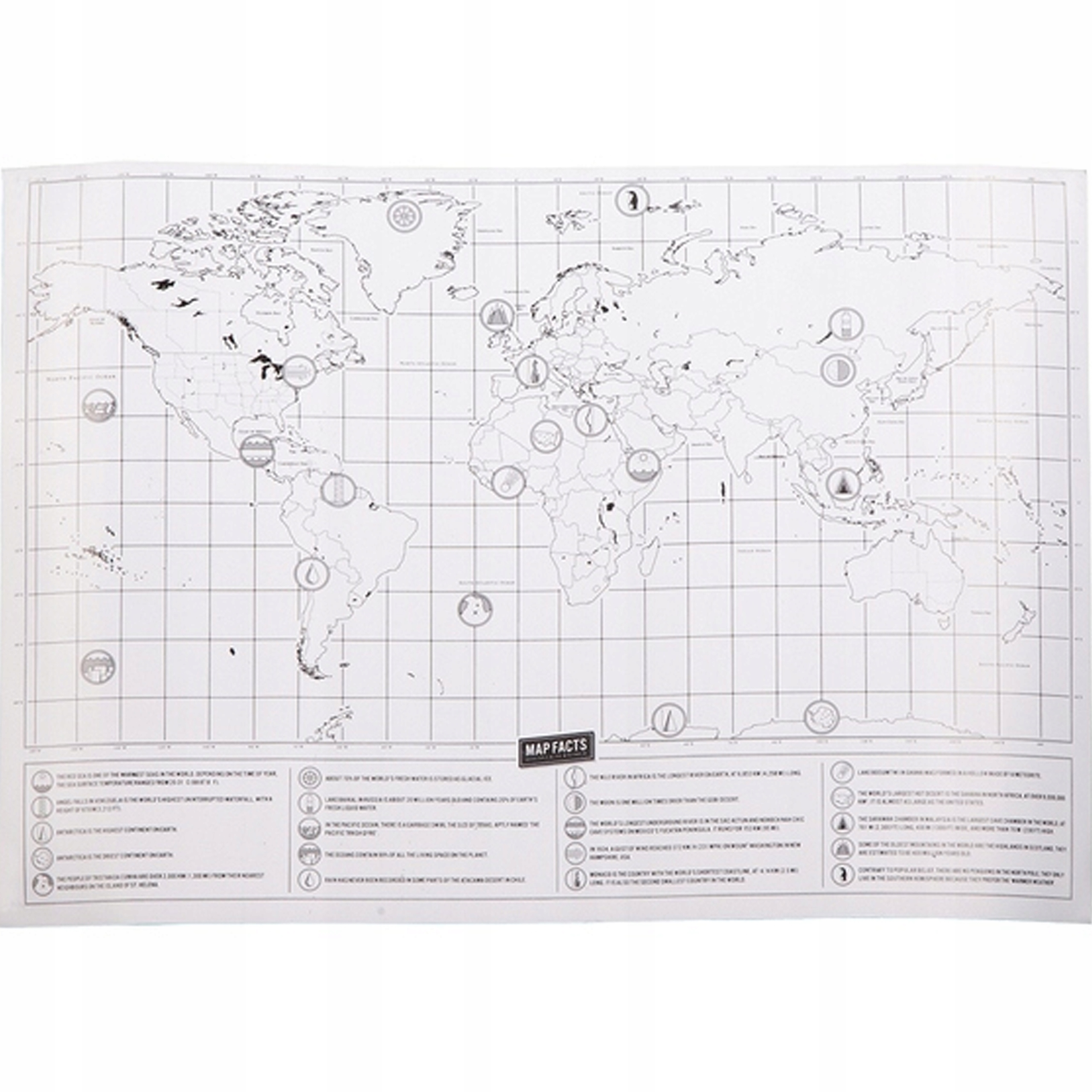 Скретч-карта це ідеальний подарунок для кожного мандрівника, а також для любителів географії світу та найменших шанувальників скретч-карт, тобто діти. Карта детально описана. Вона містить широти та довготи, усі континенти та країни.