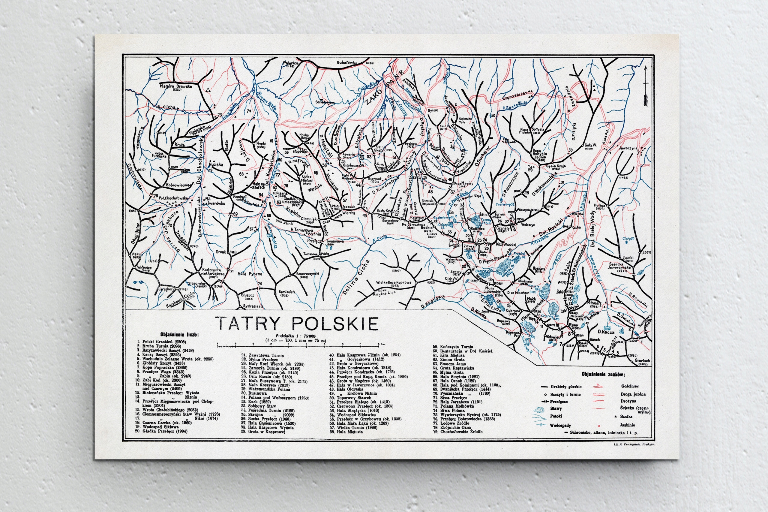 Репродукція карти «Польські Татри» - спочатку опублікована Ауреліушем Прушинським