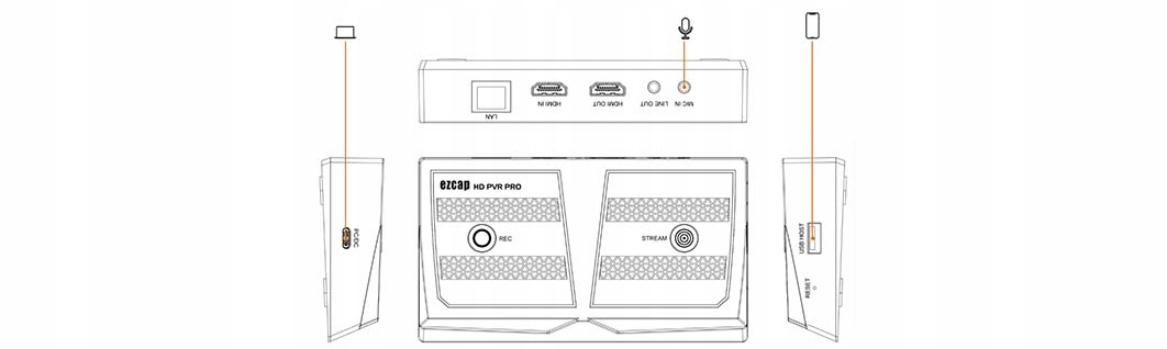 - Аудіовхід: HDMI, мікрофонний вхід (3,5 мм TRS), лінійний вхід (3,5 мм TRS), мікрофонний вхід (3,5 мм TRS)