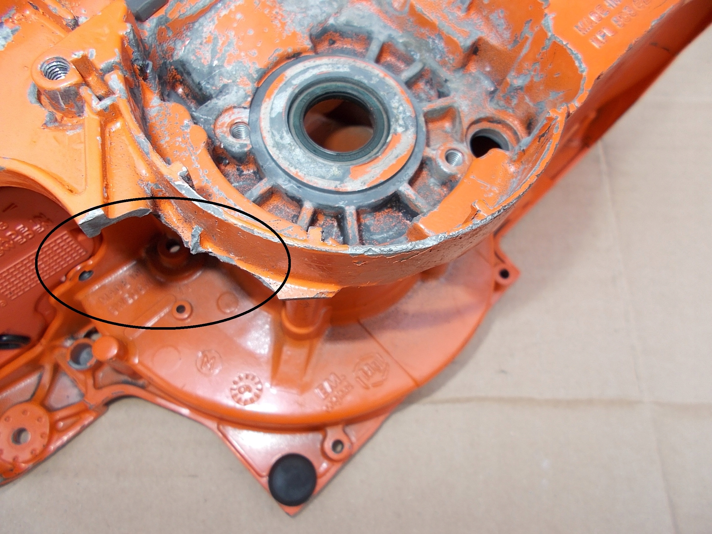 Повний картер, який видно на фотографіях, підходить для бензопил Husqvarna 362XP 365 371XP 372XP.
