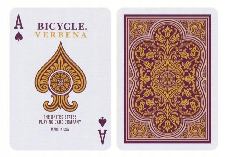 Bicycle(R) Varbena натхненний польовою квіткою, дизайн задньої частини характеризується складними лініями стебел і квітів. Все це в насиченому фіолетовому кольорі з золотими вставками.