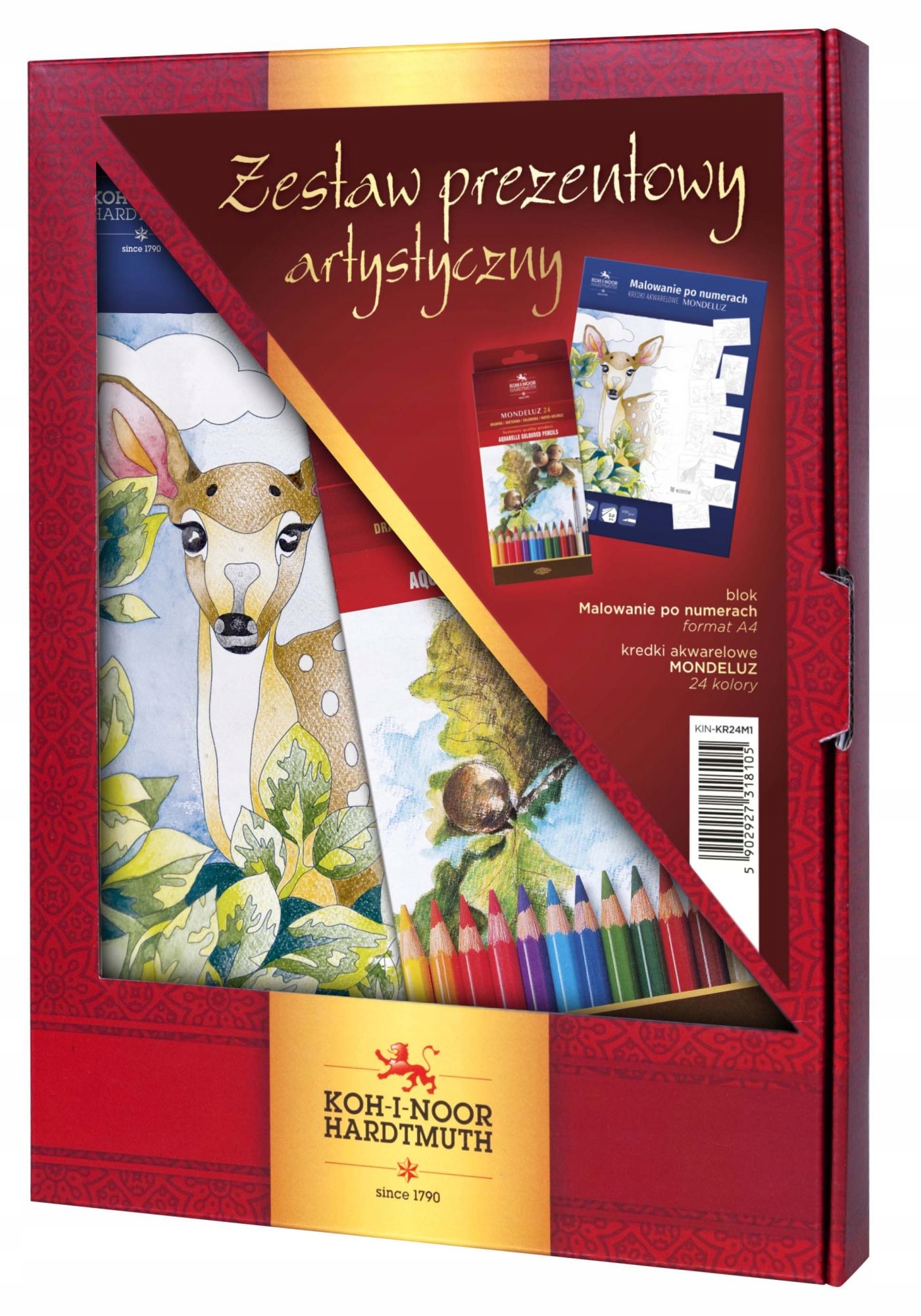 У комплекті входить: фарбування за числами та набір акварельних олівців Monduz 24 кольорів.