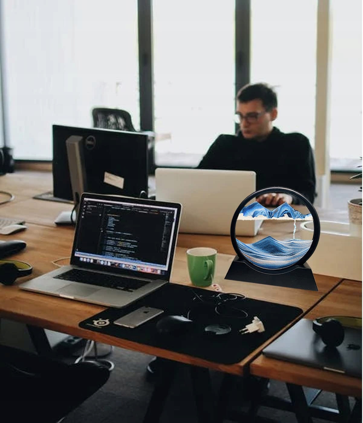 Розслаблююче зображення піску: зображення піску можна обертати на 360°, щоразу, коли воно обертається, пісок починає рухатися та повільно створює пустелі, океани та гори. Коли ви бачите, як різнокольоровий пісок повільно падає, змінюйте різні сцени, розслабляйте очі, ви будете спокійні та розслаблені.