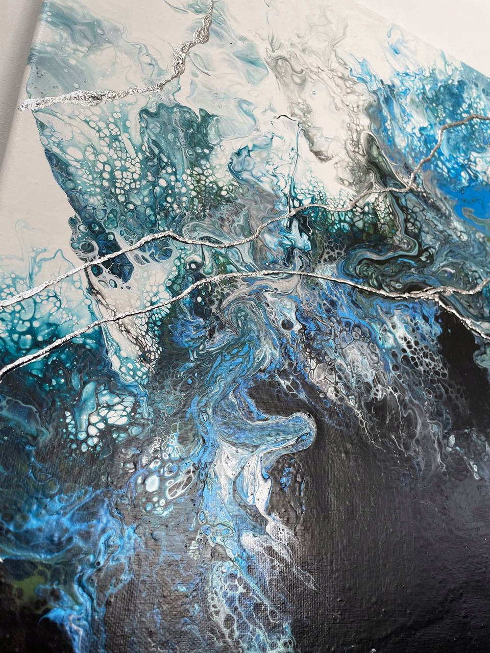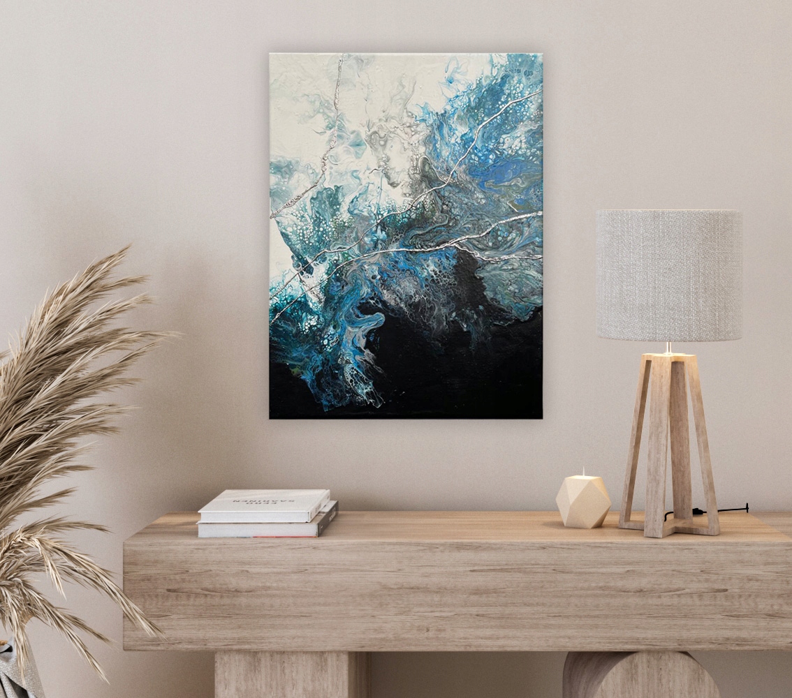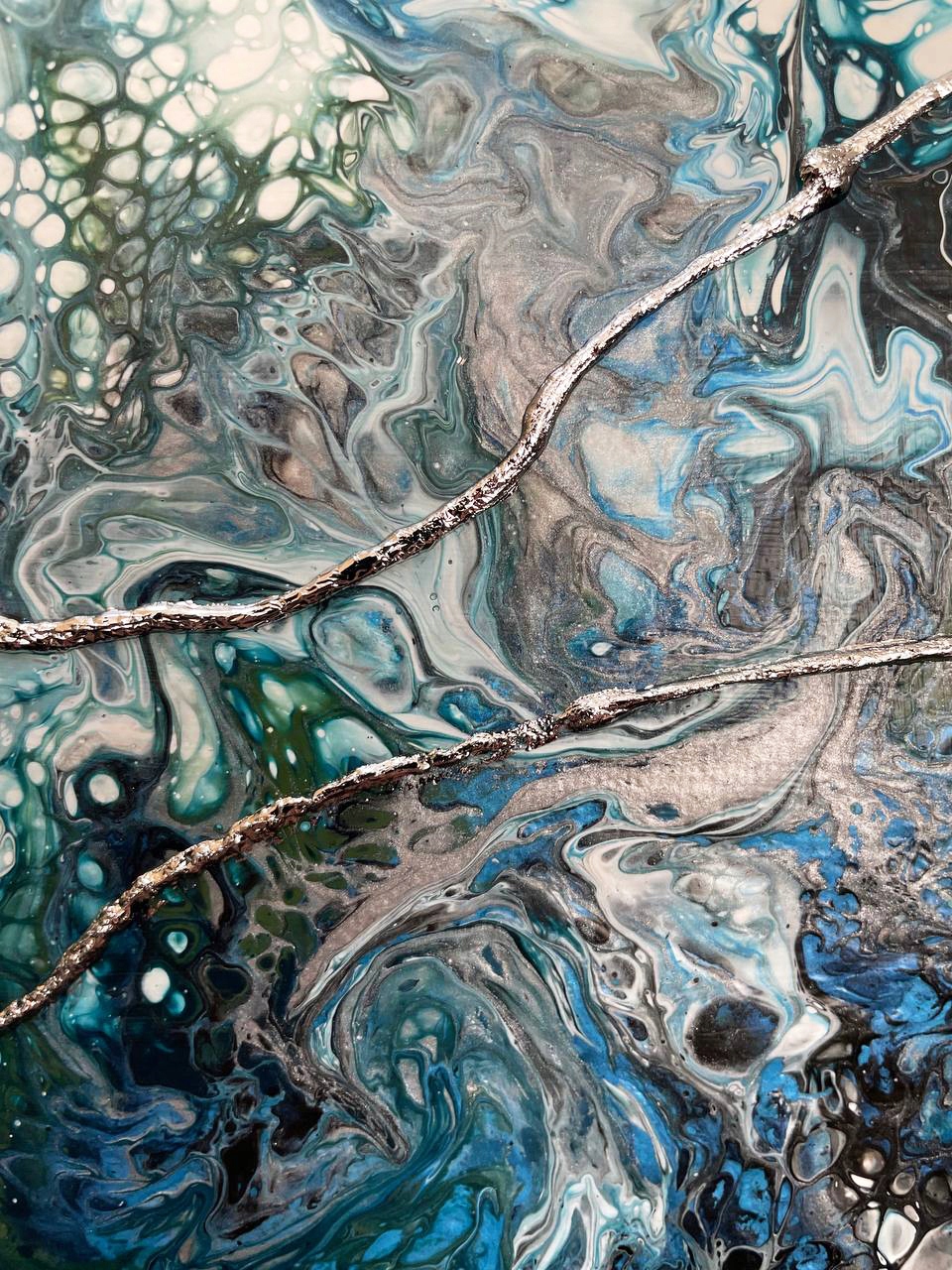 Картина 40х50см абстрактна акрил + срібло А2