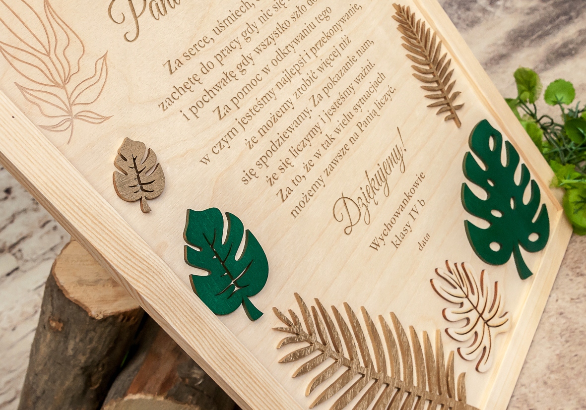 Малюнок для ВЧИТЕЛЯ з модним мотивом листя МОНСТРИКА, який є символом щастя, достатку та довголіття та допомагає у здійсненні планів.