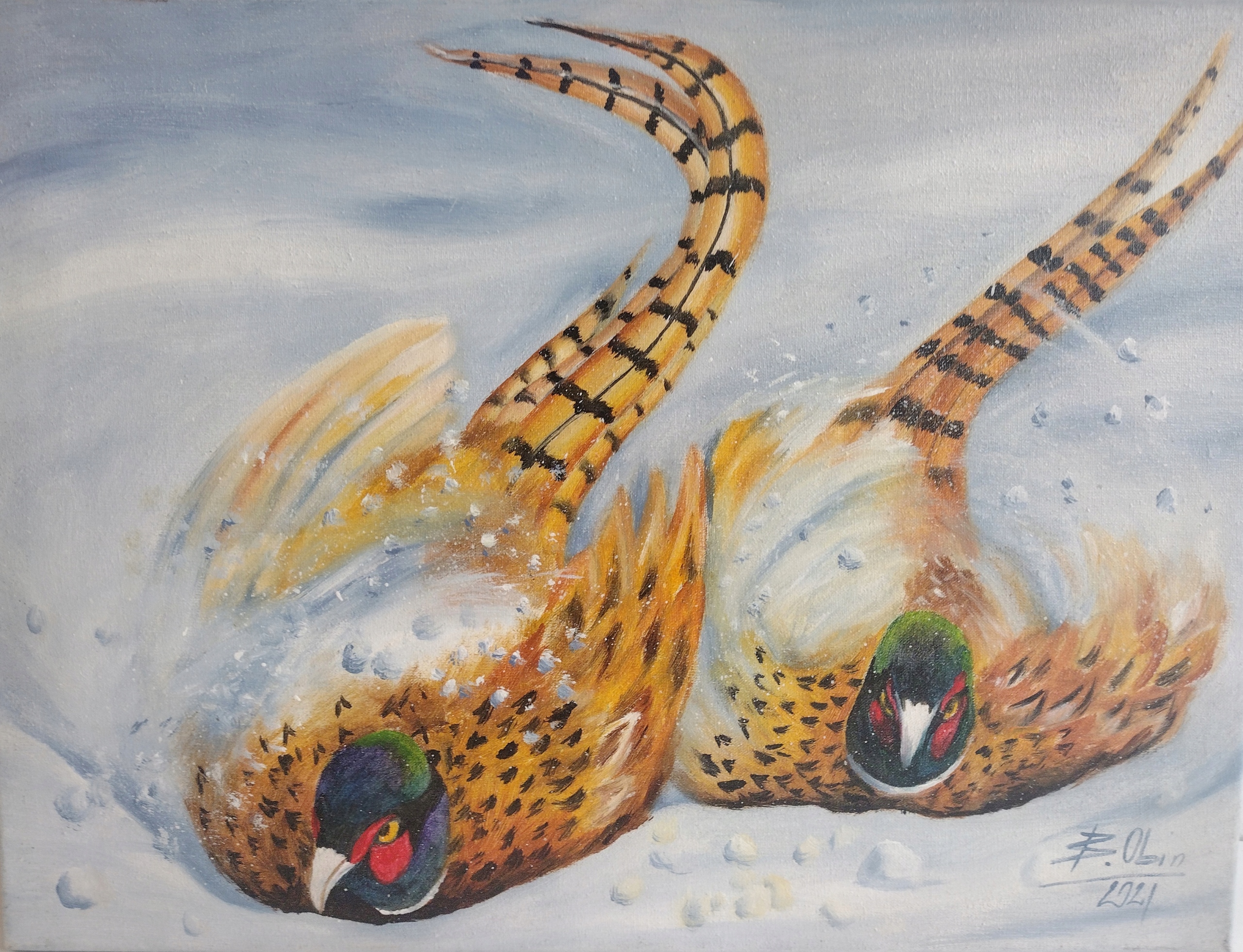 Картина акрилом Фазани грають у снігу