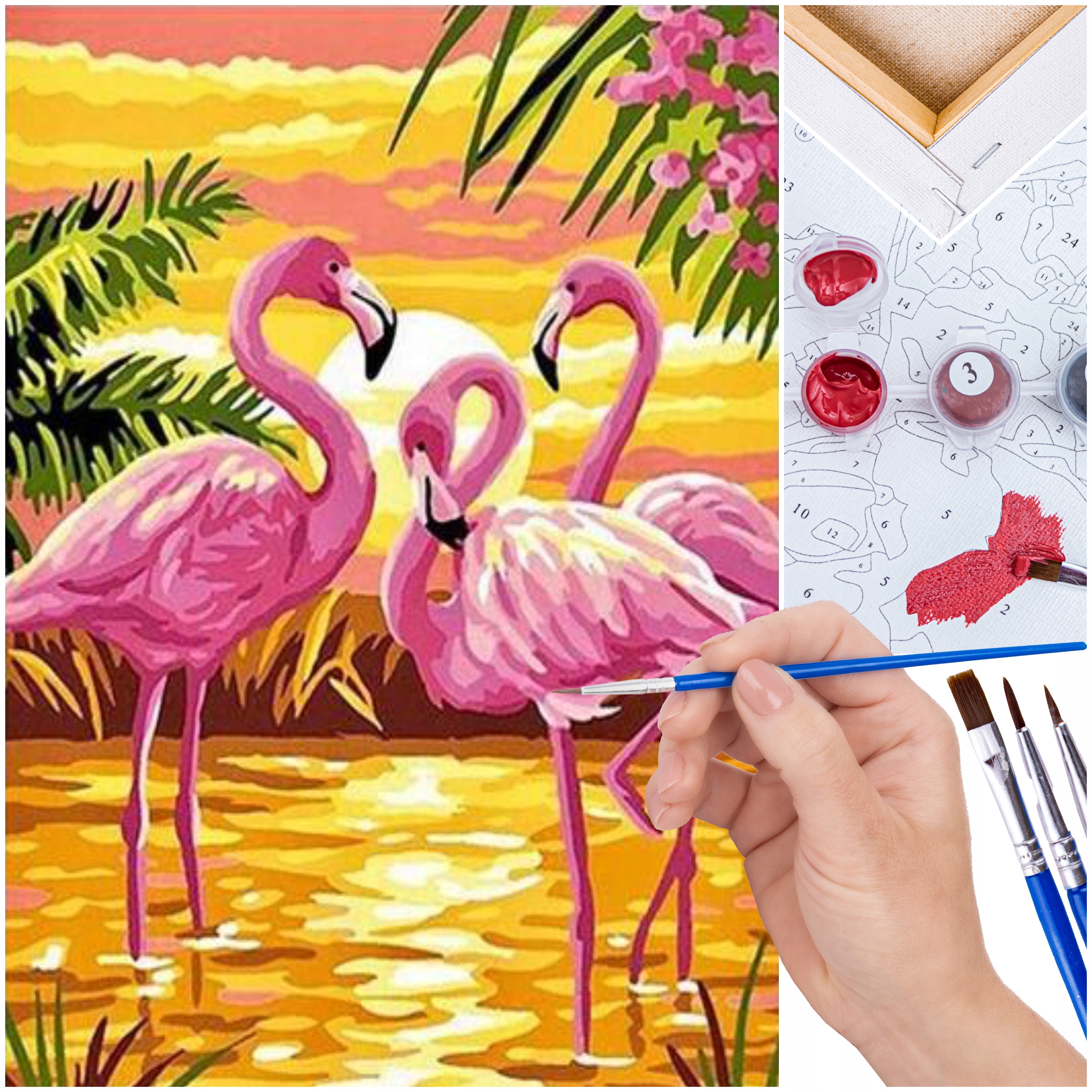 Картина для РАЗМАЛЮВАННЯ ПО ЦИФРАХ Захід Фламінго ДЕРЕВ'ЯНА РАМА Пензлі