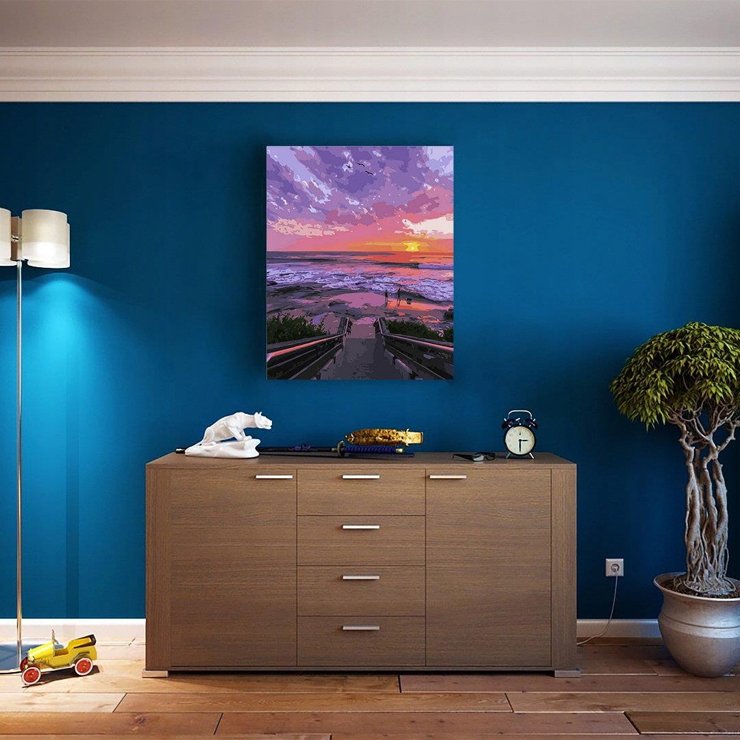Картину за номерами «Захід сонця на березі моря» можна придбати для себе або на подарунок для підлітка чи дорослого, незалежно від віку. Робота над його розфарбовуванням неодмінно подарує вам масу приємних моментів, а вже виконана робота стане чудовою і ефектною ідеєю для подарунка, яким ви зможете прикрасити свою квартиру чи офіс .