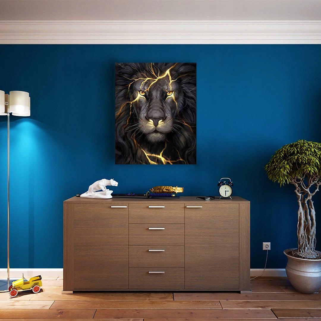 ПРИМІТКА: Цей аукціон призначений для набору малювання за номерами, Темний лев, розміром 50x40 см НА РЕМЕНІ.