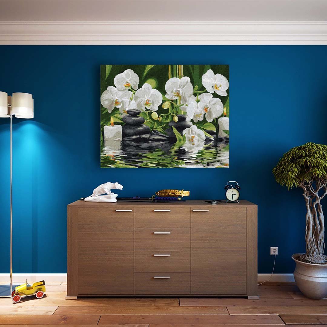 Картину за номерами «Орхідеї у воді» можна придбати для себе або на подарунок для підлітка чи дорослого, незалежно від віку. Робота над його розфарбовуванням неодмінно подарує вам масу приємних моментів, а вже виконана робота стане чудовою і ефектною ідеєю для подарунка, яким ви зможете прикрасити свою квартиру чи офіс .