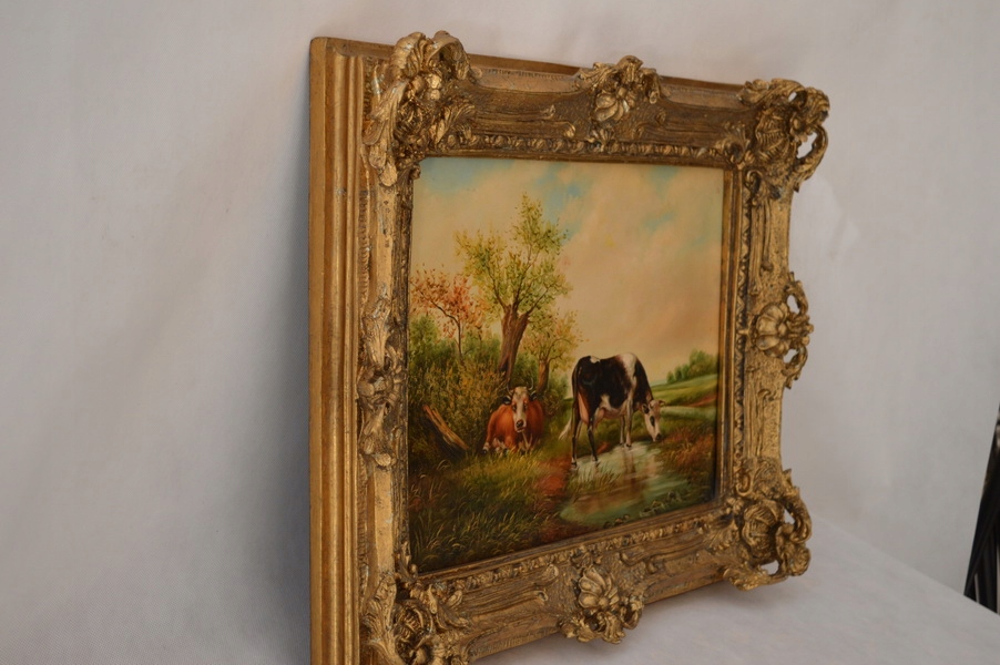 КАРТИНА МАСЛОМ - БАРОКОВА РАМКА - ЗНАКОВИЙ ПЕЙЗАЖ КОРІВ