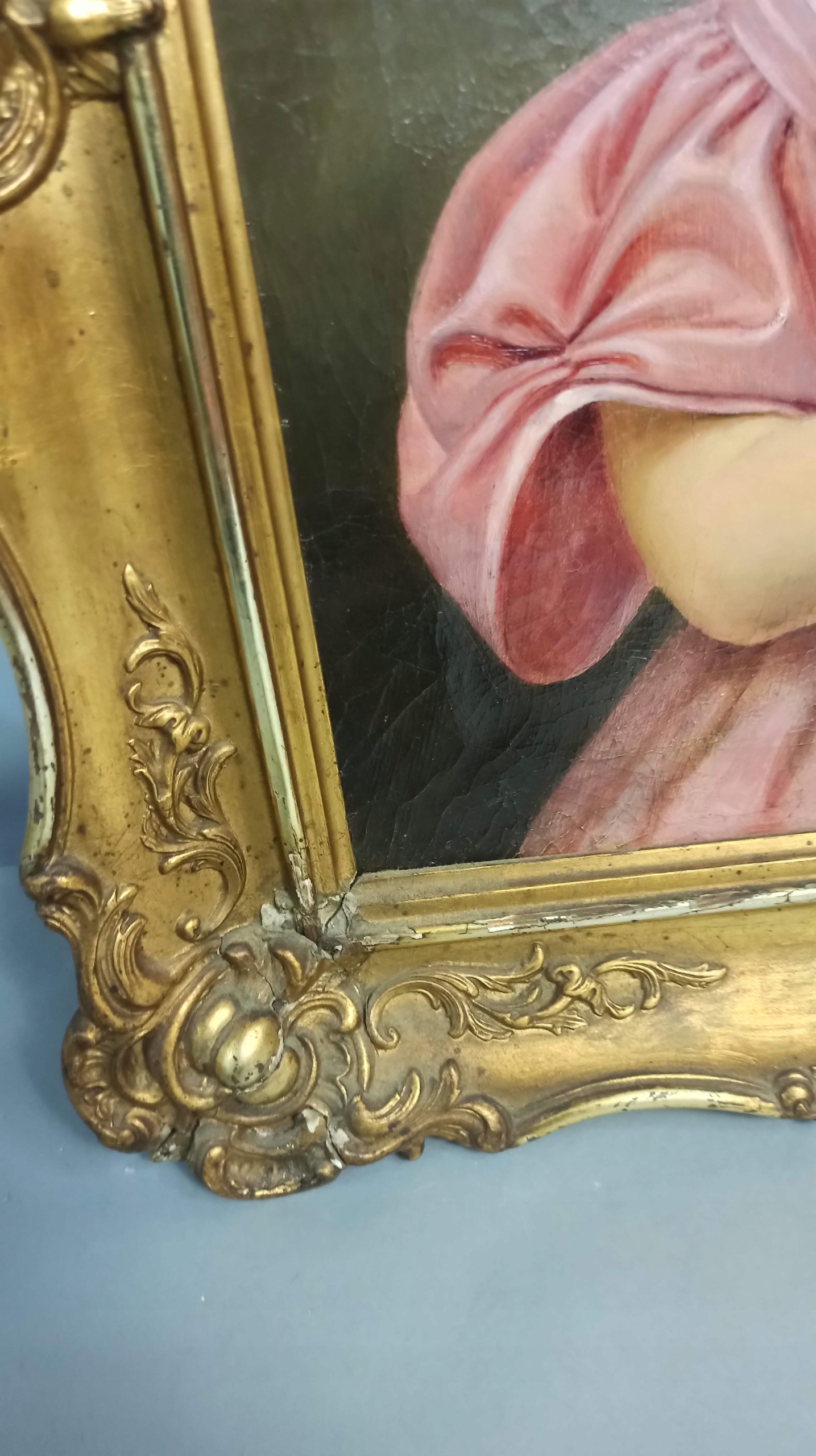 Картина написана з відсиланням до портретного живопису ХІХ століття
