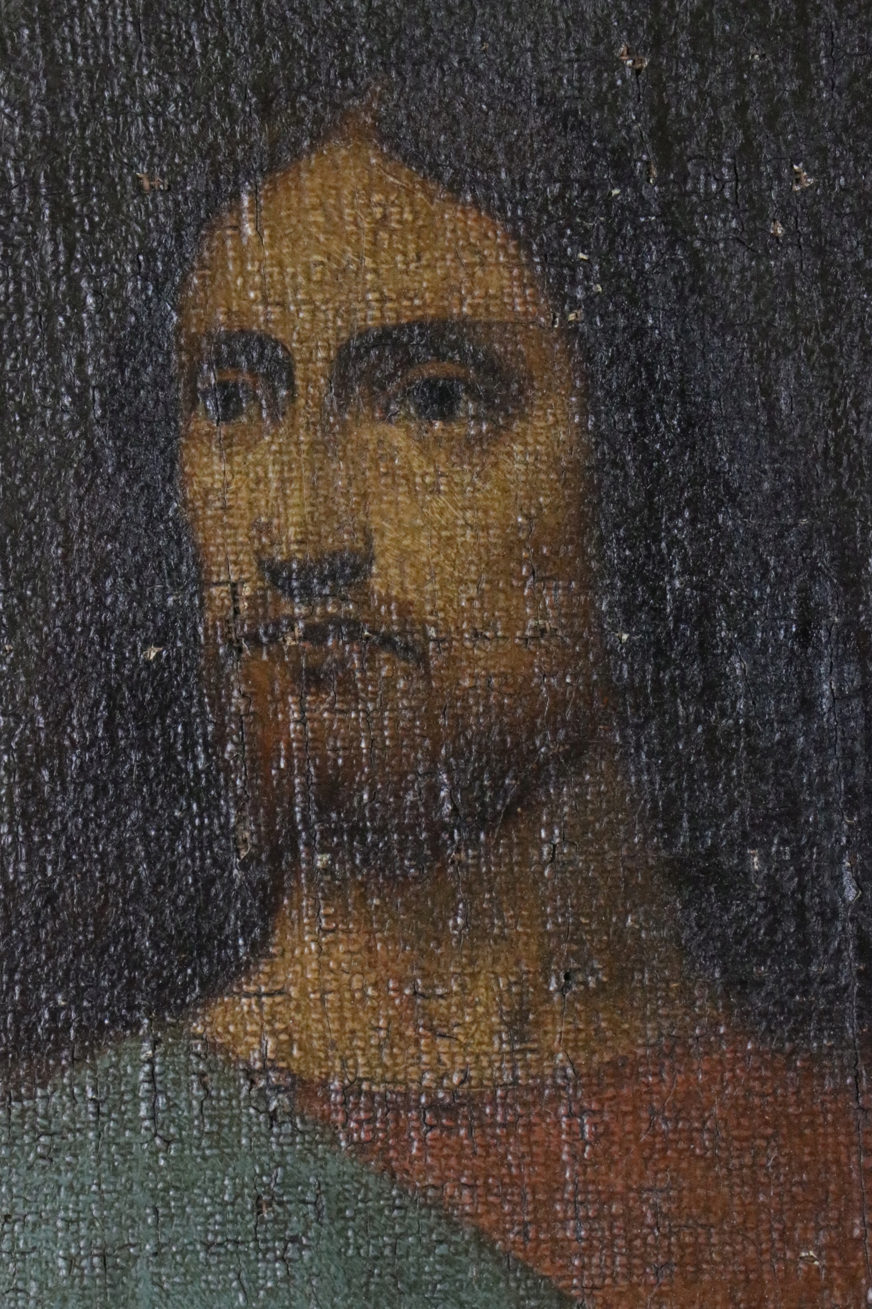 Картина Ісуса Христа з грішницею. Під ногами напис латиною: «Qui sine peccato est vestrum primus lapidem mittat». На звороті дуже слабка записка з підписом Emil Signol 1804 - ....... Копія картини Еміля Signol. Видно, що картина виконана в 19 столітті або на початку 20 століття. Картина обрамлена по краях дерев'яними планками, а знизу і з правого боку краю полотна вона ніби проклеєна мальованим скотчем. Полотно дуже добре намальоване.