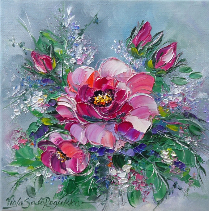 Картина маслом «Троянди» на полотні, підрамник 20x20 Viola Sado R violaart