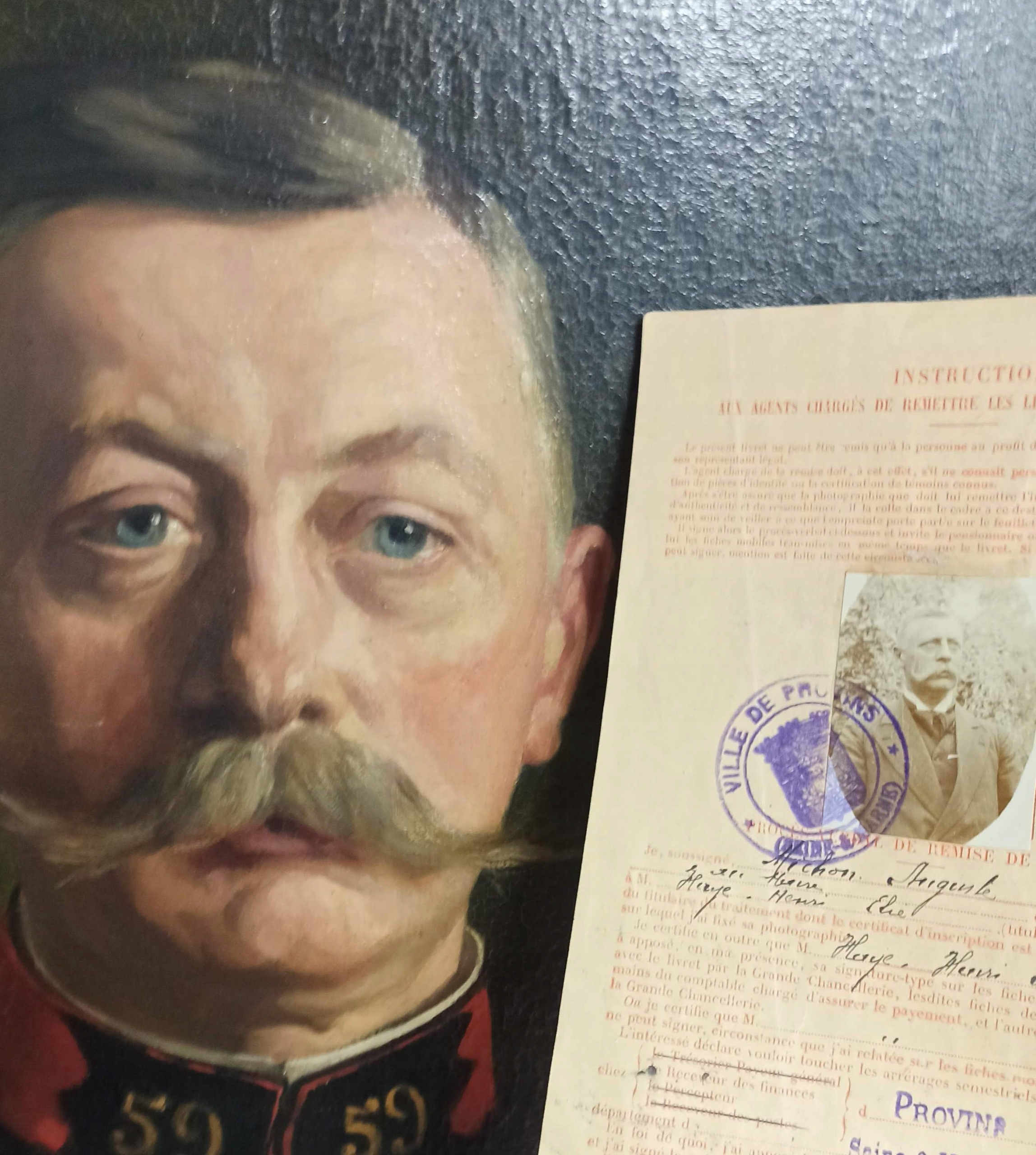 Картина на полотні 1914 р. Портрет французького офіцера, документи, жетон