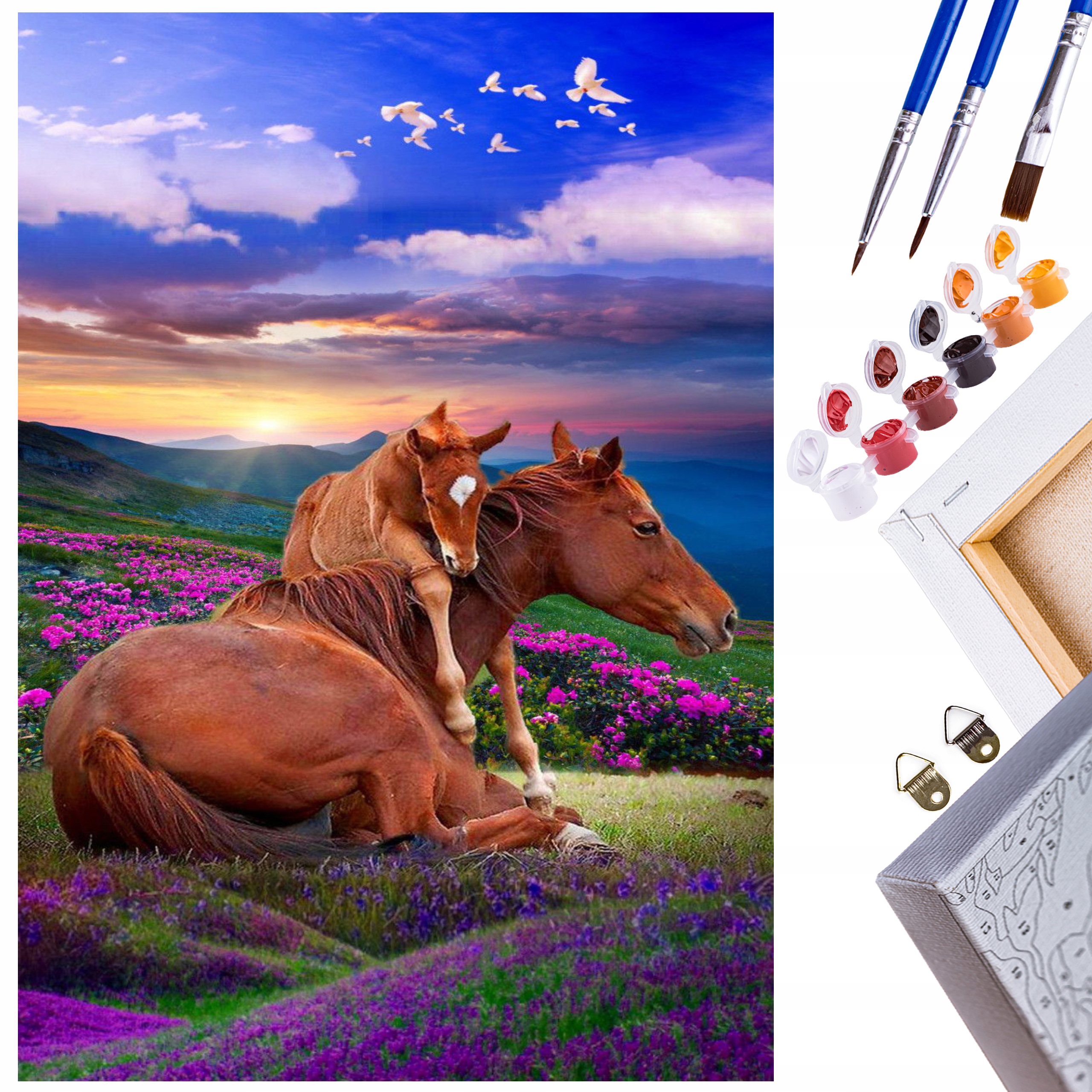 КАРТИНА РАЗМАЛЮЙ ЗА ЦИФРАМИ РАМКА КОНІ ГОРИ ПЕЙЗАЖ