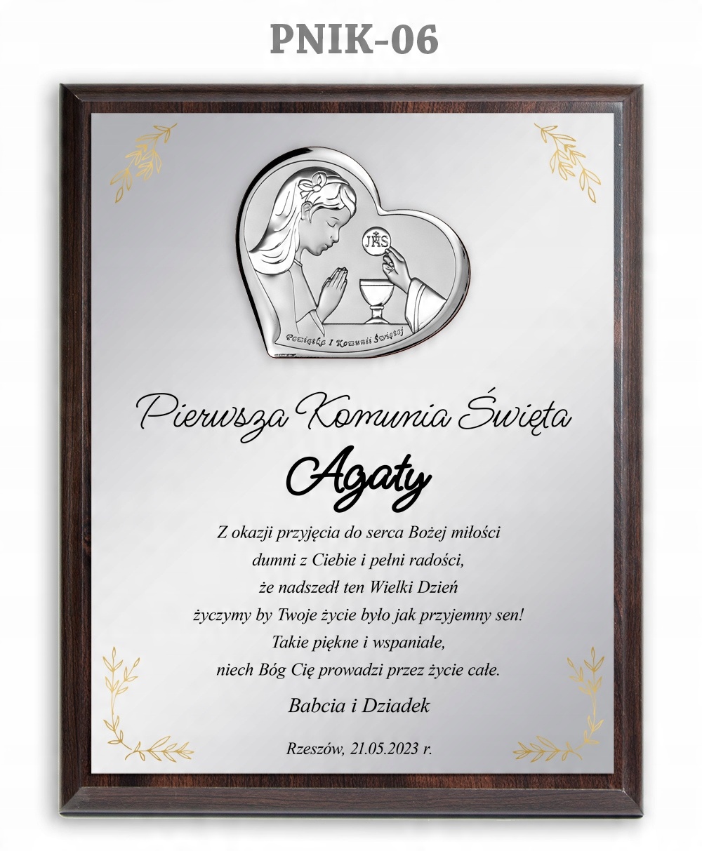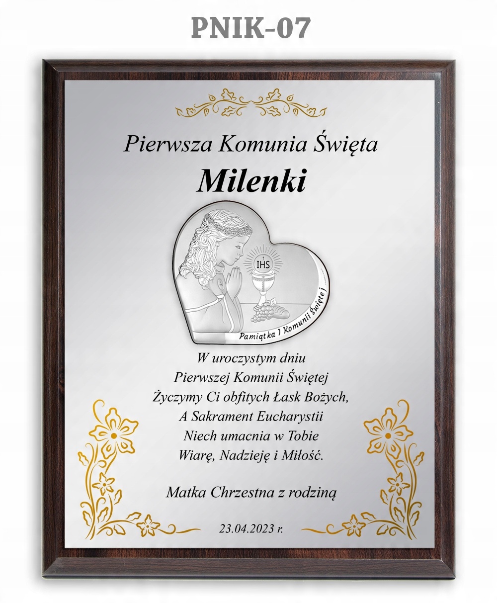 Сувенір на Перше Святе Причастя зі срібною картинкою та побажаннями.