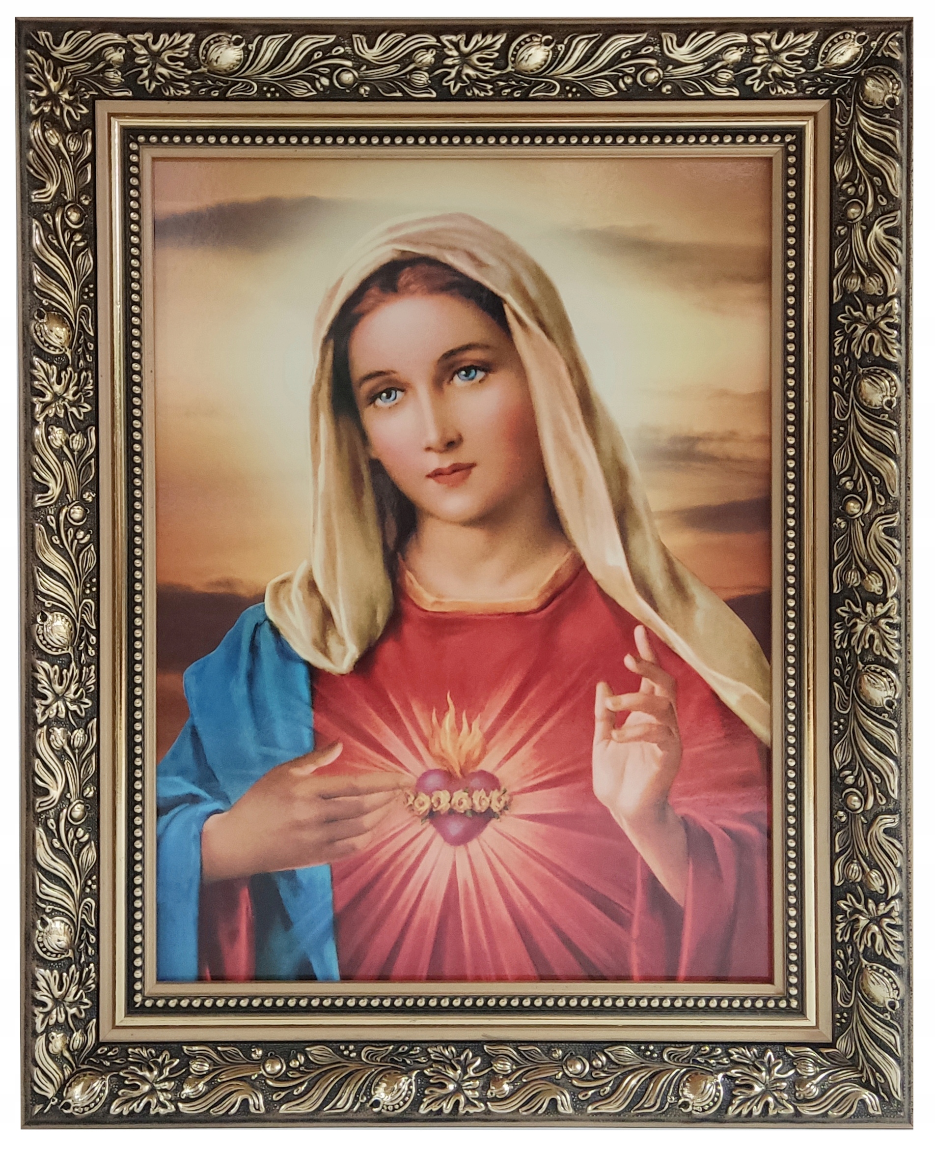 КАРТИНА СВЯТОГО ВІДКРИТОГО СЕРЦЯ МАРІЇ В ЗОЛОТІЙ РАМІ