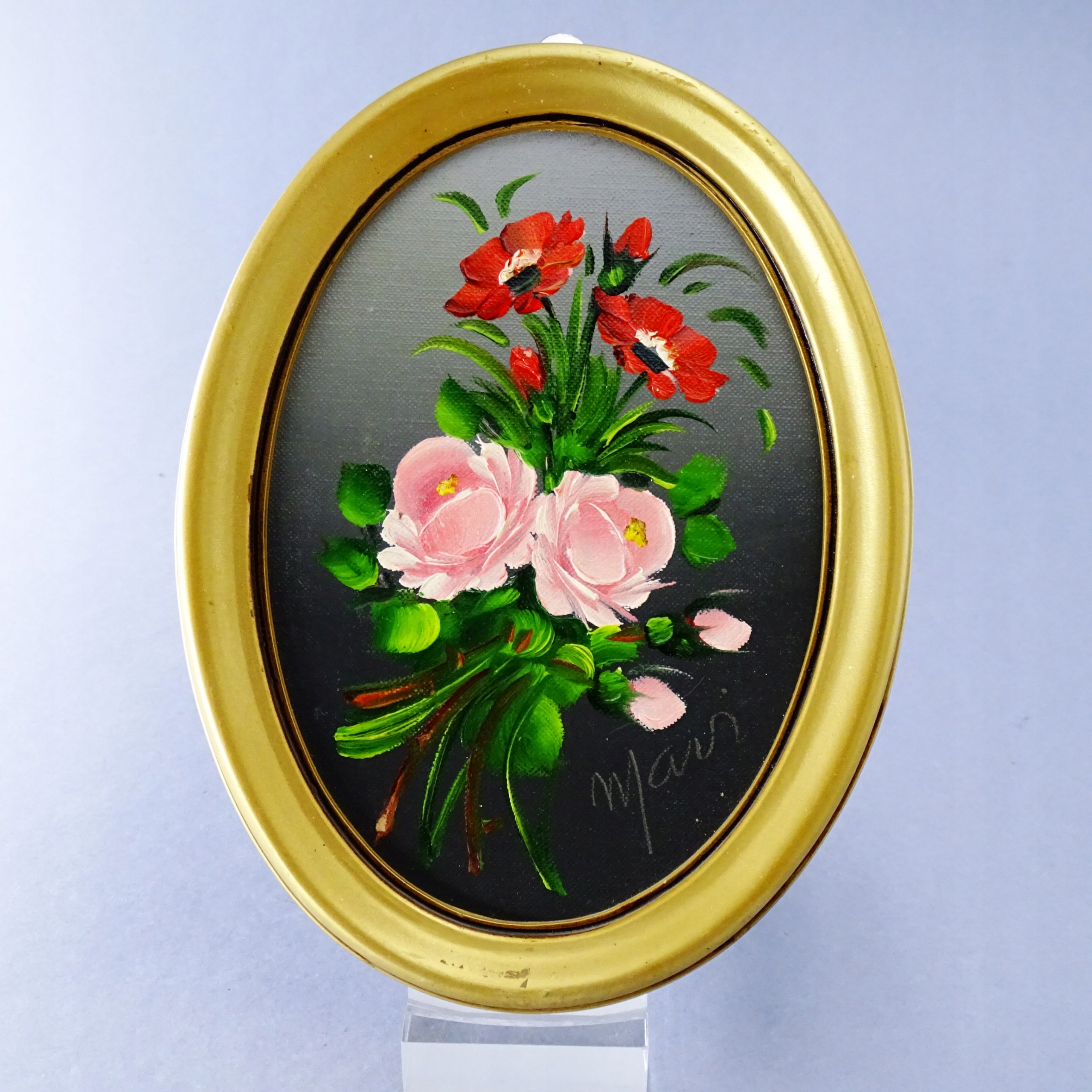 КАРТИНА ТРОЯНДИ В ОВАЛЬНІЙ РАМЦІ В РУЧНОМУ РОЗПИСУ