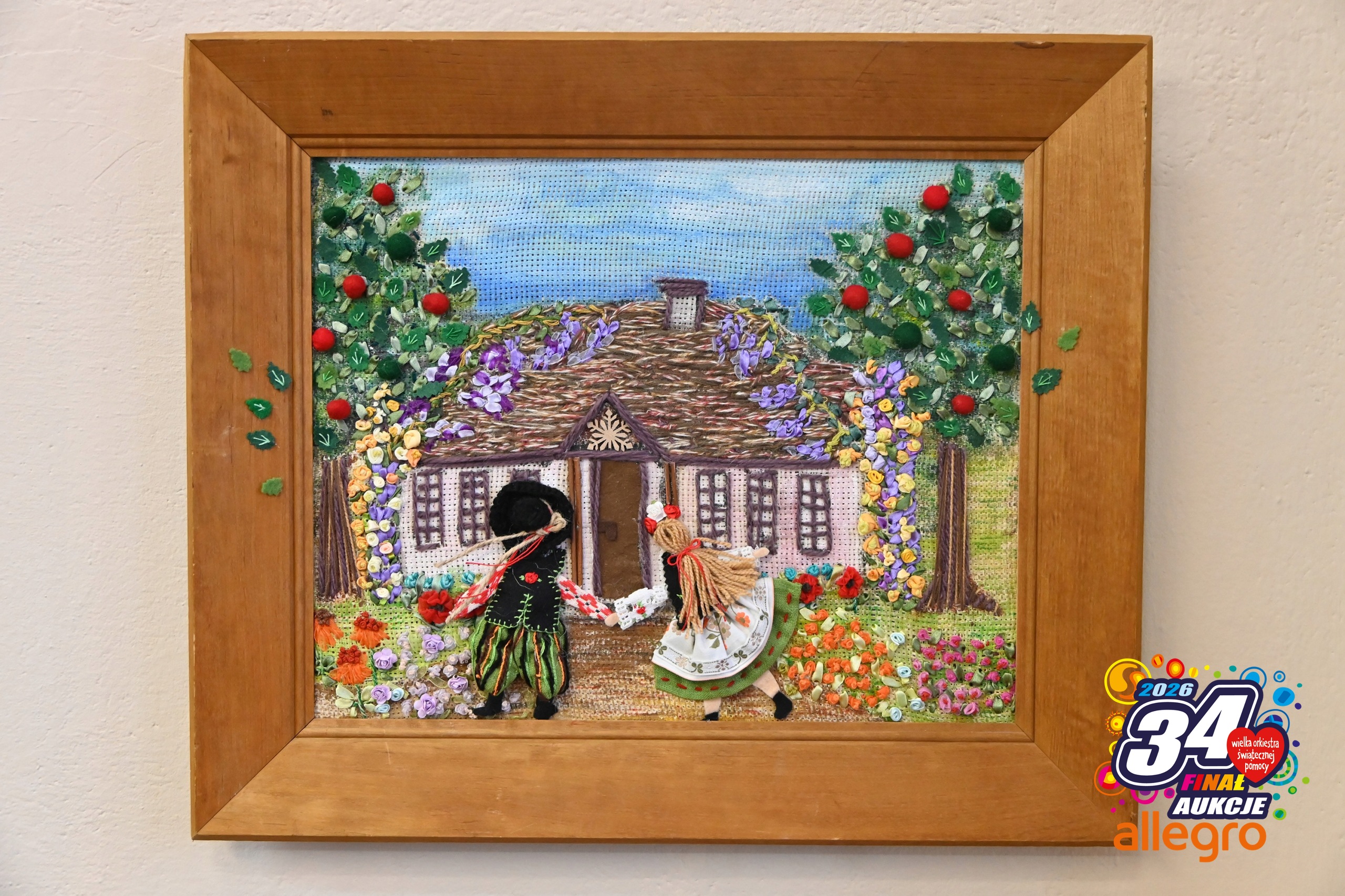 картина Аліни Крицької «У веселій садибі» виконана в техніці аплікації на тканині