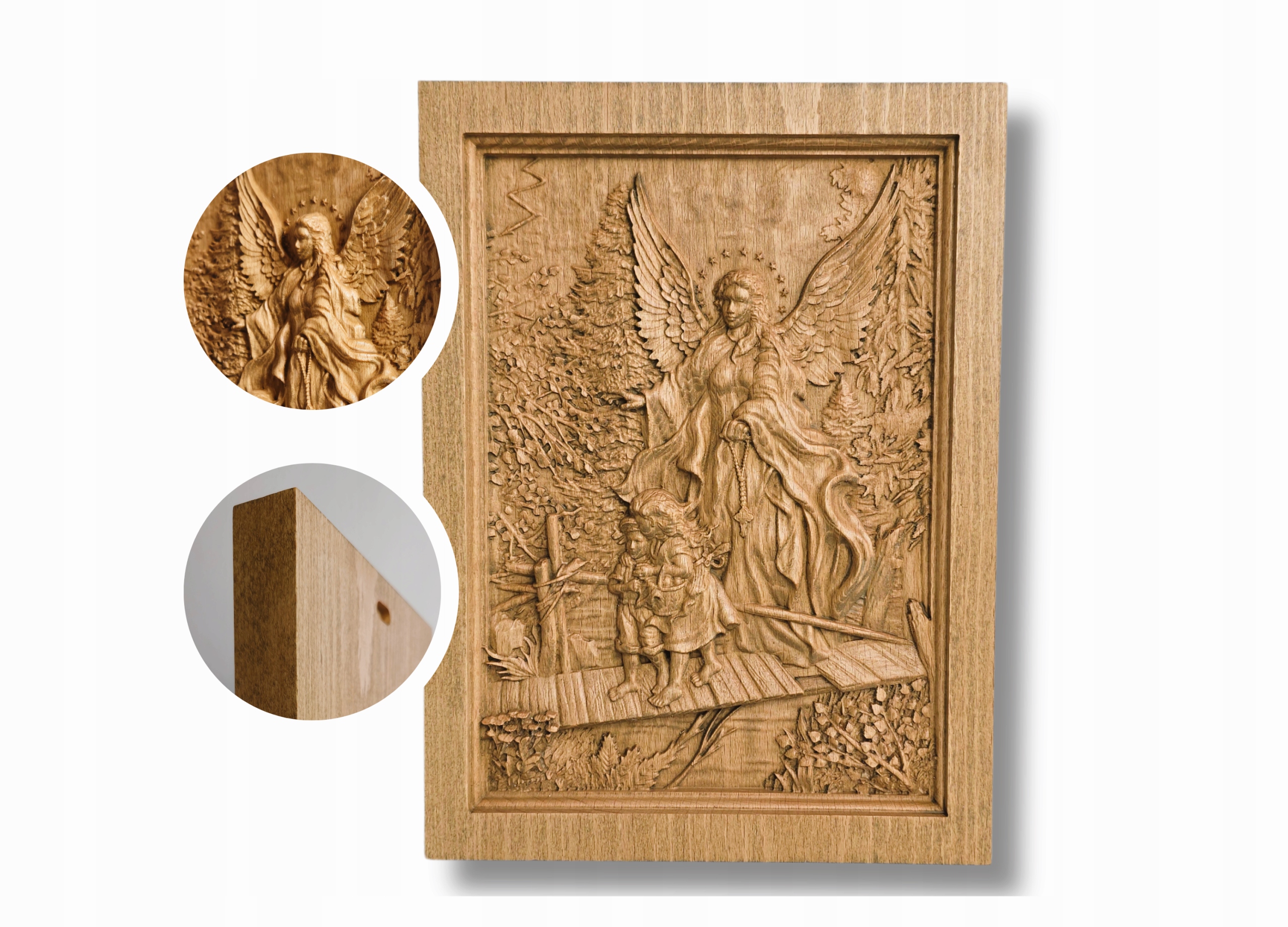 Малюнок з ангелом -опікуном подарунком BAS -реліф -дерев’яний гравер