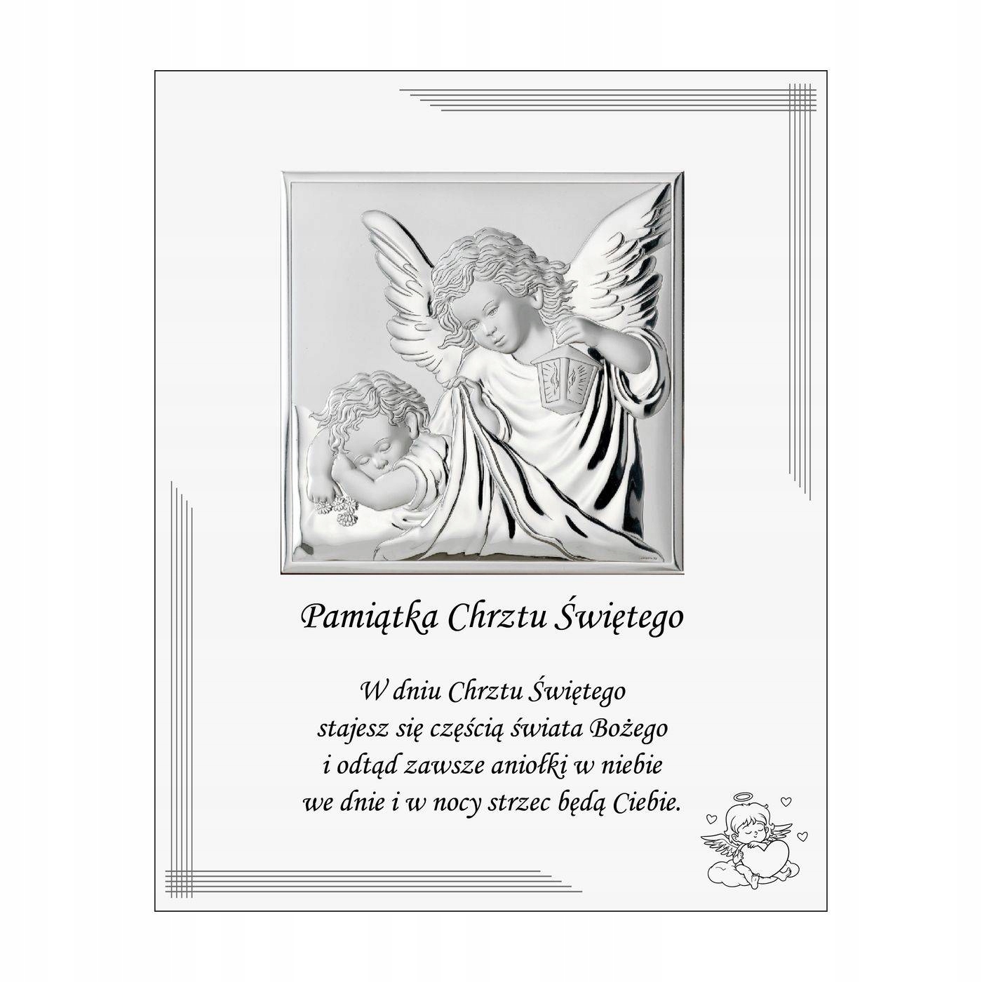 Срібна картина на хрещення з ангелом-охоронцем, сучасний сувенір на хрещення в білій рамці | Розмір: 25х20 см | Артикул: VL880S1BI