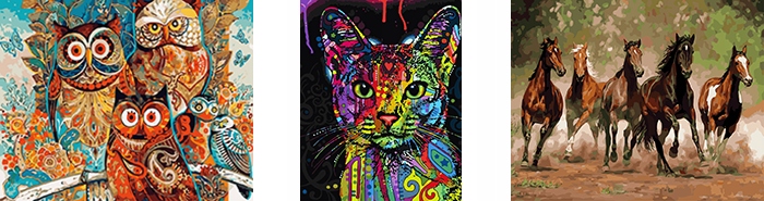 Фарби позначені цифрами, що відповідають пронумерованим секторам. Легко наносяться на полотно, швидко сохнуть, стійкі до погодних умов і не жовтіють.