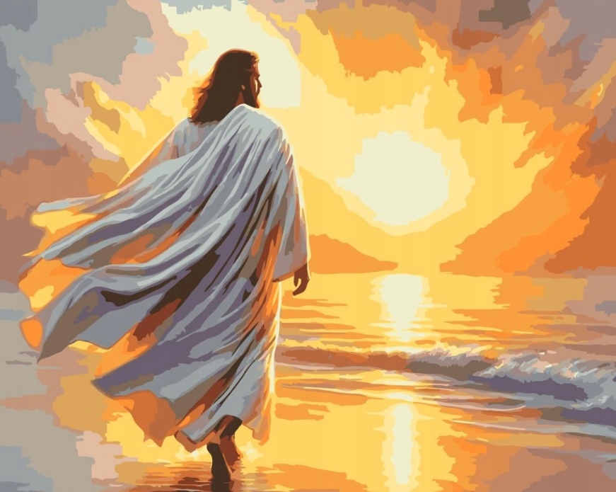 Картина за номерами Ісус Релігія Морський пейзаж Захід 40x50 см Друк на полотні