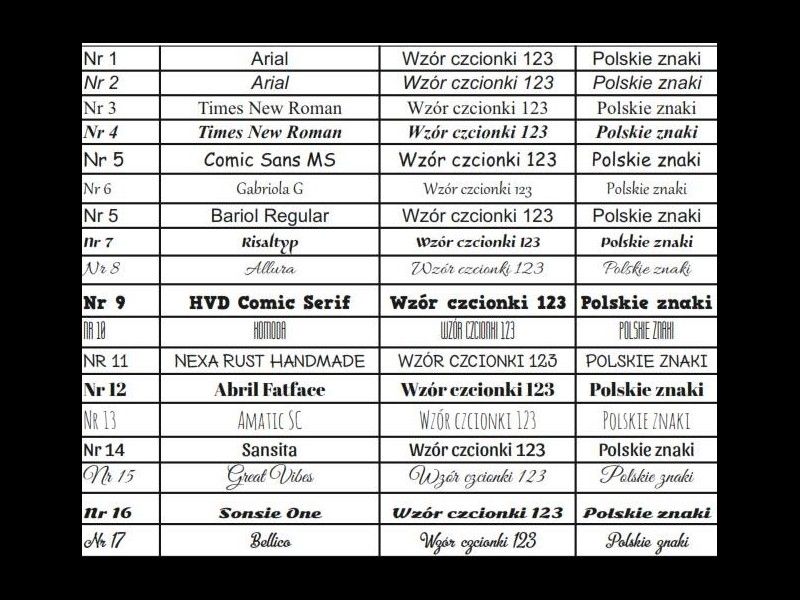 ми виконуємо лазерне гравіювання на ламінованій золотій пластині, яку приклеюємо до внутрішньої сторони кришки коробки, ми також можемо вигравірувати кришку, як у прикладі. Виберіть шрифт із таблиці. Ми допоможемо в межах своїх можливостей, ми не в змозі зробити все. Нижче наведено приклади, не обов’язково пов’язані з проданим товаром, але, безумовно, надихаючі