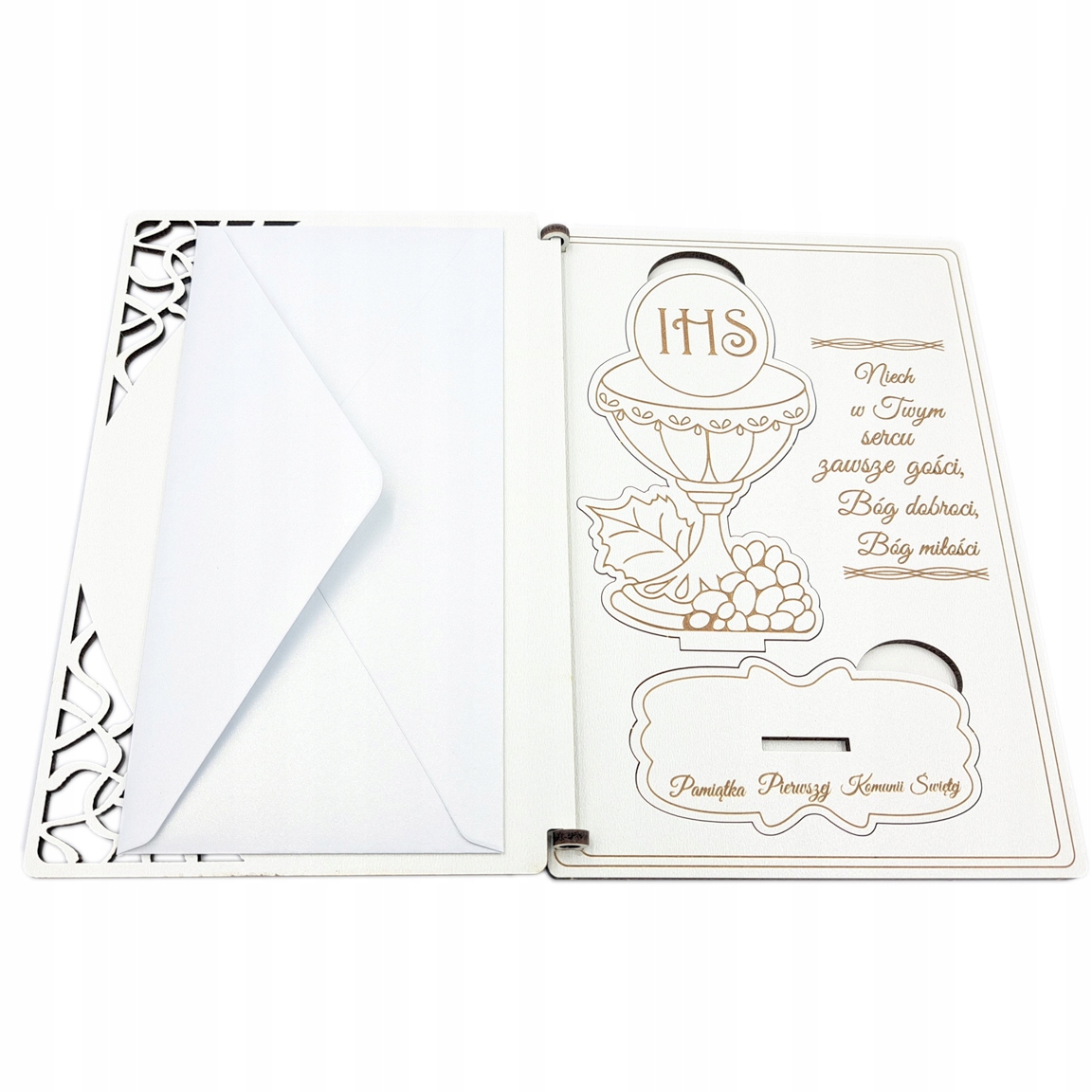 КАРТКА КОМУНІЯ СУВЕНІРИ КОМУНІЯ - дерев'яна листівка з подарунком - IHS