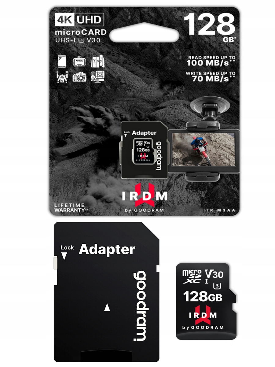 Особливості карт пам'яті IRDM включають: стійкість до ударів, рентгенівського випромінювання, магнітного випромінювання та водостійкість. Завдяки найякіснішим, ретельно відібраним компонентам, вони ідеально підходять для екстремальних умов. На всі карти пам’яті серії IRDM by GOODRAM поширюється довічна гарантія, що свідчить про дбайливе ставлення польського виробника до їхнього виробництва.