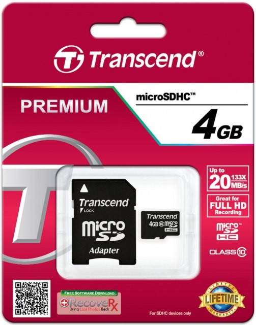 - Опис: Transcend Premium - карта флеш-пам'яті (перехідник microSDHC на SD входить у комплект ) - 4 ГБ - Class 10 - 133x - microSDHC