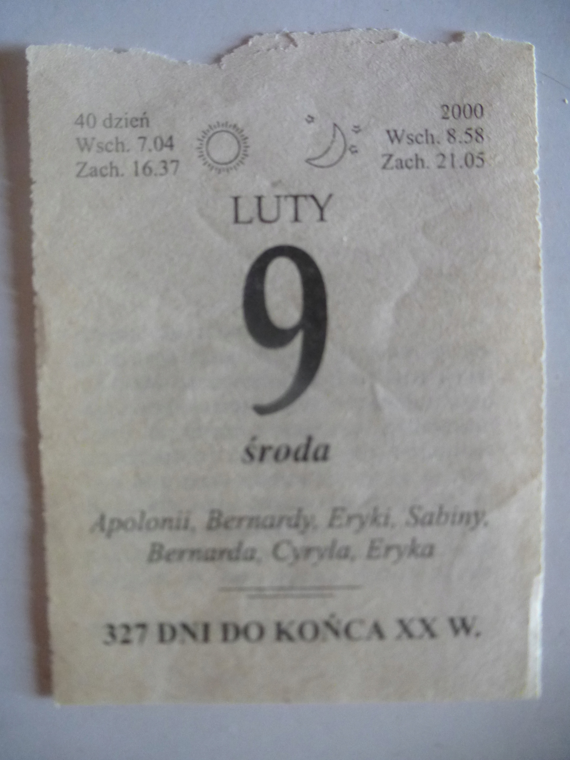 Просматривая «kartka z kalendarza 9 lutego 2000», вы можете быть уверены, что данный товар из каталога «Остальные» будет доставлен из Польши и проверен на целостность. В цене товара, указанной на сайте, учтена доставка из Польши. Внимание!!! Товары для Евросоюза, согласно законодательству стран Евросоюза, могут отличаться упаковкой или наполнением.