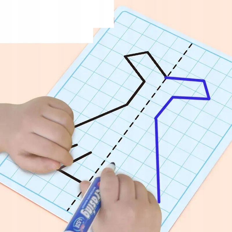 На кожній картці є малюнок, симетричний відносно осі, що допомагає розвивати когнітивні навички та зорове сприйняття. Набір пропонує не тільки розвагу, але й можливість навчитися, експериментуючи з різними візерунками та техніками малювання. Виготовлені з високоякісних матеріалів, картки мають поверхню, яку можна легко стирати та використовувати повторно, тож веселощі ніколи не закінчуються.