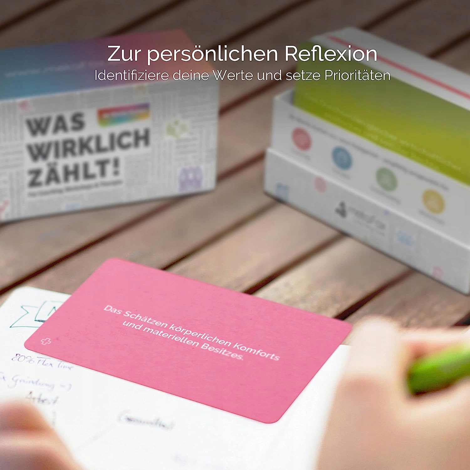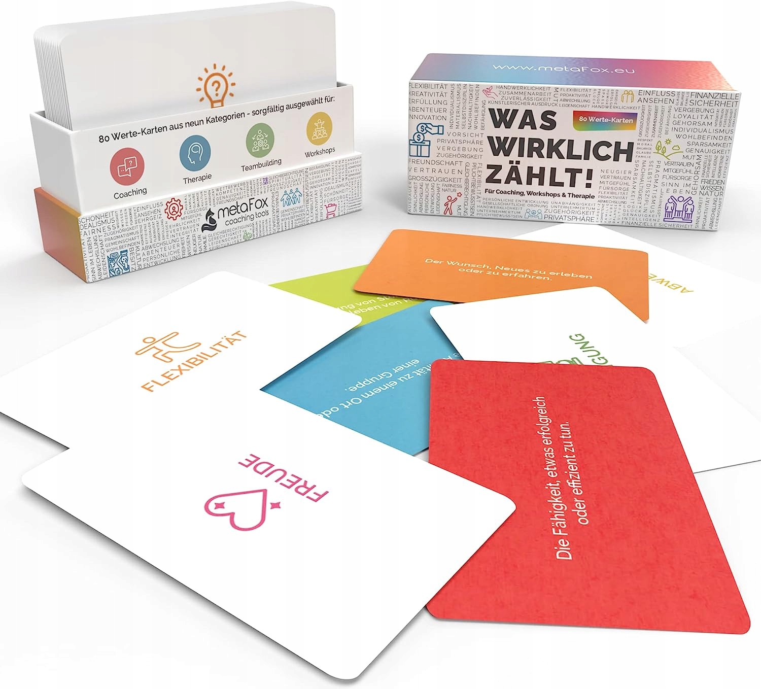 Ці терапевтичні картки ідеально підходять для особистих зустрічей із тренерами та клієнтами. Допоможіть їм розвинути глибоке розуміння цінностей і переконань – наприклад, у Терапії прийняття та відданості (ACT).
