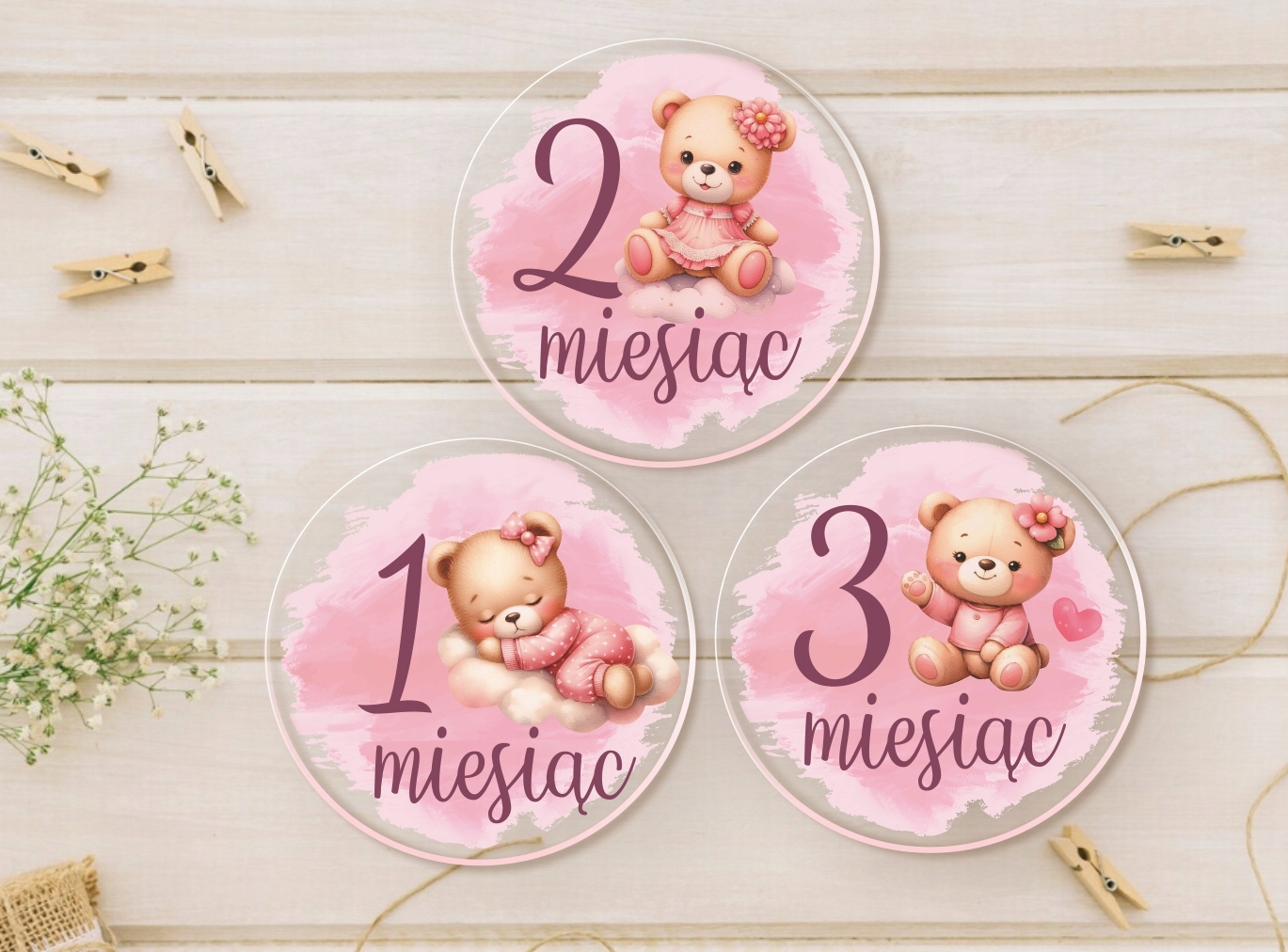У набір входить 15 великих круглих дощок з оргскла з незмінною графікою + одна дошка з іменем дитини, яку ви надаєте.