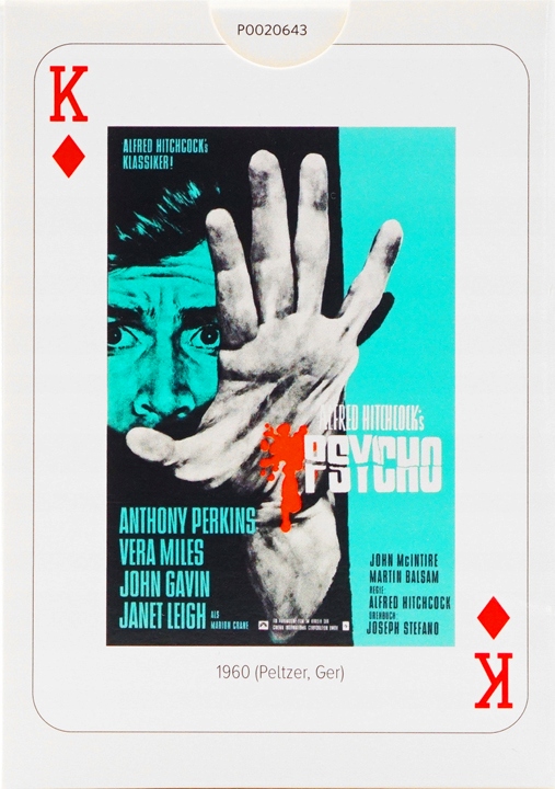 Гральні карти з оригінальними аверсами з мотивом, пов’язаним із знаменитим Альфредом Хічкоком. Колода складається з 54 пластикових карток розміром 63 х 88 мм.