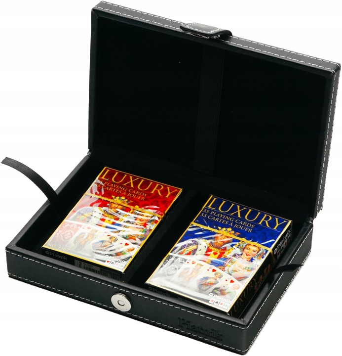 Ексклюзивний набір карт Piatnik в коробці з еко-шкіри чорного кольору, оббитий чорним м'яким матеріалом.В набір входять дві колоди кращих карт Piatnik, історична модель Luxury. Кожна колода містить 55 карт. Ідеальний подарунок, базовий набір для досвідченого гравця.