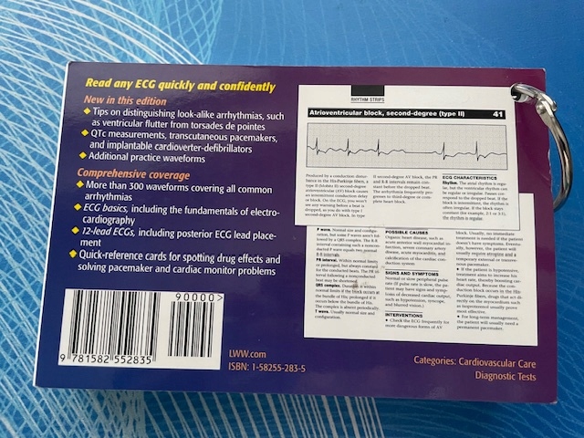 Цей практичний набір 164 картки охоплює широкий спектр інформації, від основ ЕКГ до складної інтерпретації ЕКГ 12-провідних. Крок за кроковим підходом допомагає уточнити різкий і часто неінтутивний процес інтенсивного та інтерпретації ЕКГ-ритмів. Оновлена більш ніж 25 різними серцевими ритмами, ця вичерпна колода карт також містить нову інформацію та технологію різання. Практичні ритмічні смуги включаються для полегшення практичного навчання. Новий у цьому виданні: вигляд, схожий на аритмії; Некардальний другий вплив на серцевий ритм; Трансктувальні кардіостимулятори; і імплантаційні кардіовертер-дефібрилятори.