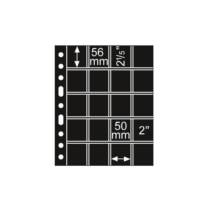 Картка Grande 5/4 S - з чорною підкладкою, двостороння, ідеально підходить для зберігання, наприклад, кришечок для кави, банкнот, поштових марок, містить 20 віконець, кишеньковий формат 56 x 50 мм.