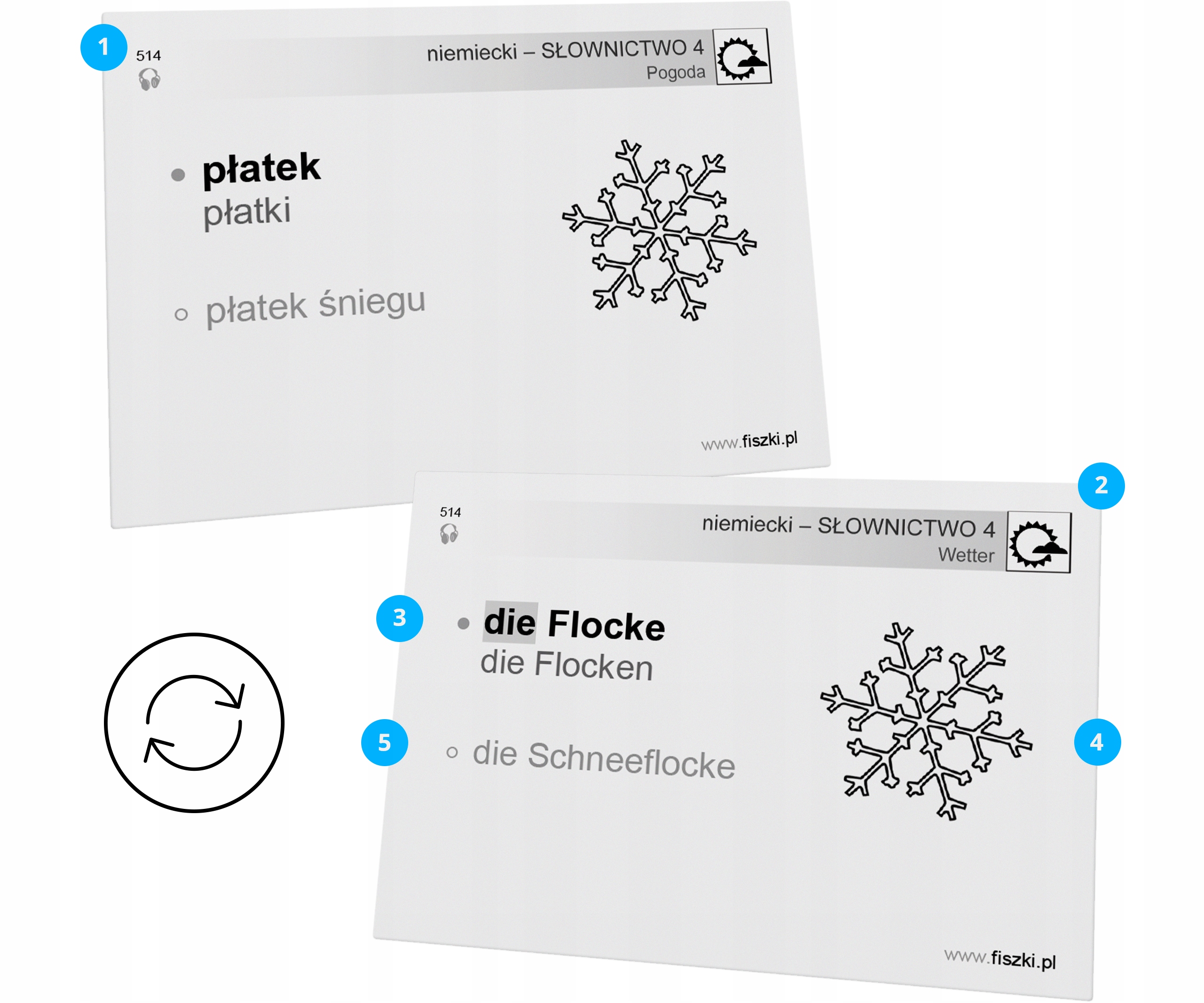 Слогани представлені на довговічних картках, які представляють лише те, що необхідно для ефективного навчання. Просто перегорніть картку кілька разів, щоб запам’ятати нове слово і, останнє, але не менш важливе, приклад його правильного вживання.