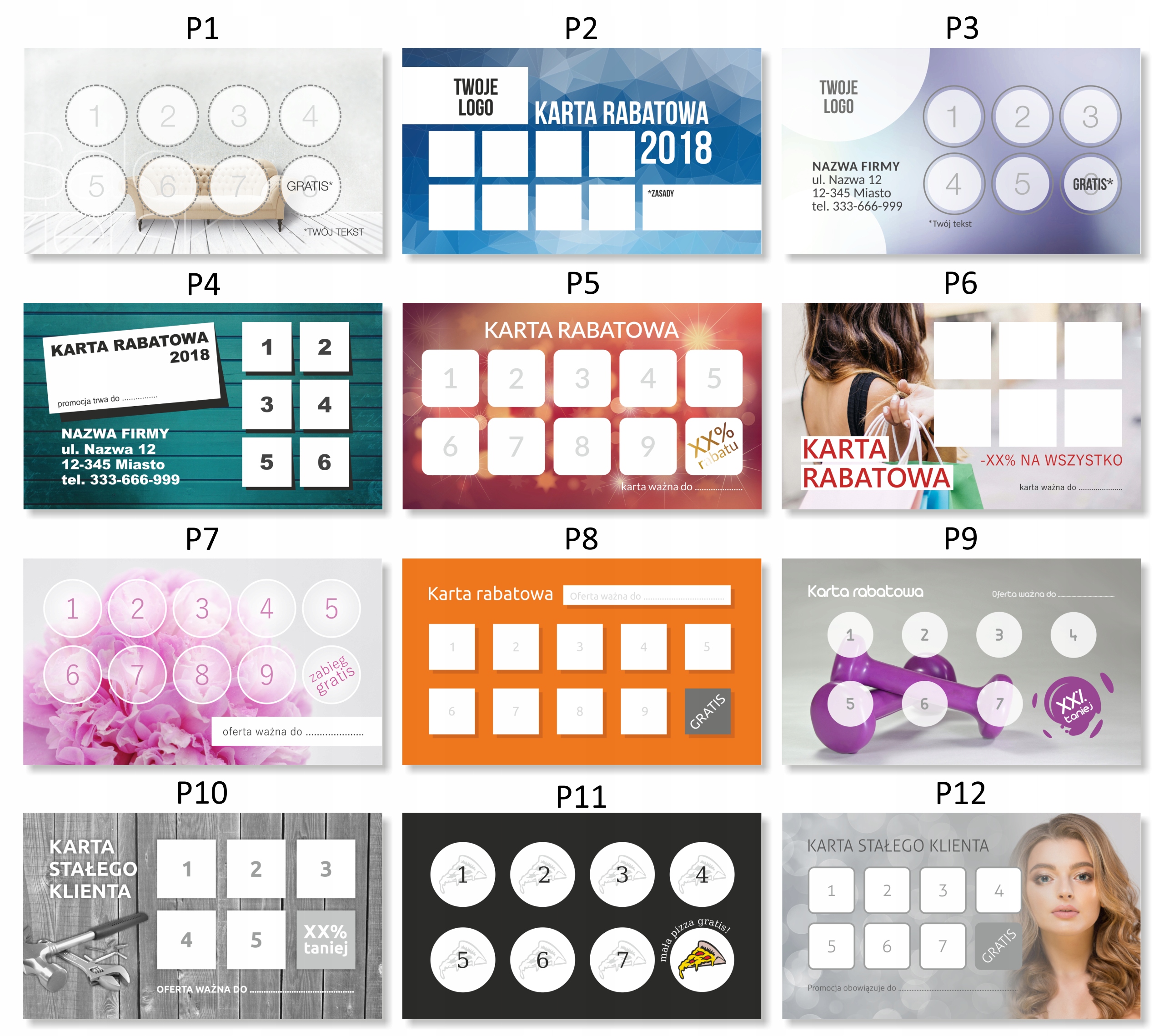 Ви знайдете широкий асортимент у нашій пропозиції дисконтні картки різних форматів. Ми пропонуємо різноманітні шаблони, адаптовані до ваших потреб.
