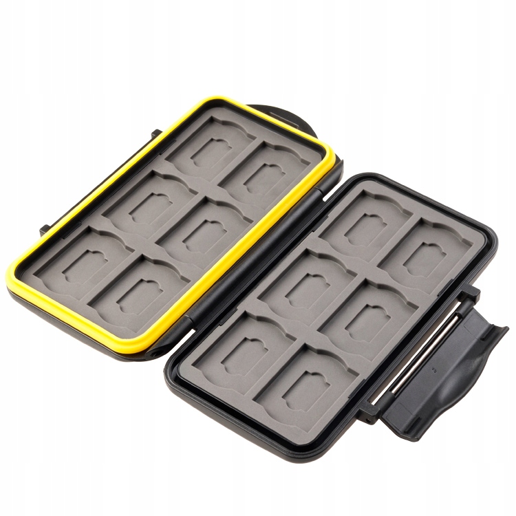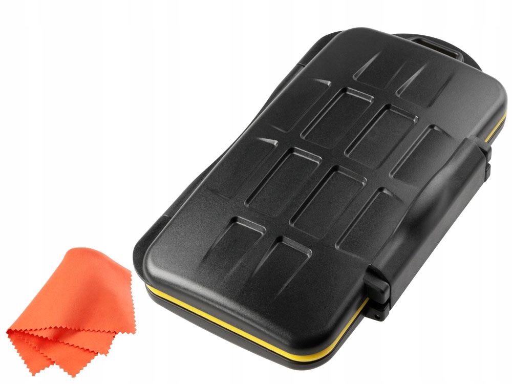 Водонепроникні SD та мікро -SD -карти. Міцна конструкція полікарбонату дозволяє чудово захистити картки від впливу, вологи та забруднення. У випадку може вмістити до 12 карт SD та 12 мікро SD. Силіконовий тиснення внутрішніх справ суворо адаптовано до форми карт заважає їм рухатися та полегшити їх сортування. Очищення інтер’єру, виготовленого з силікону.