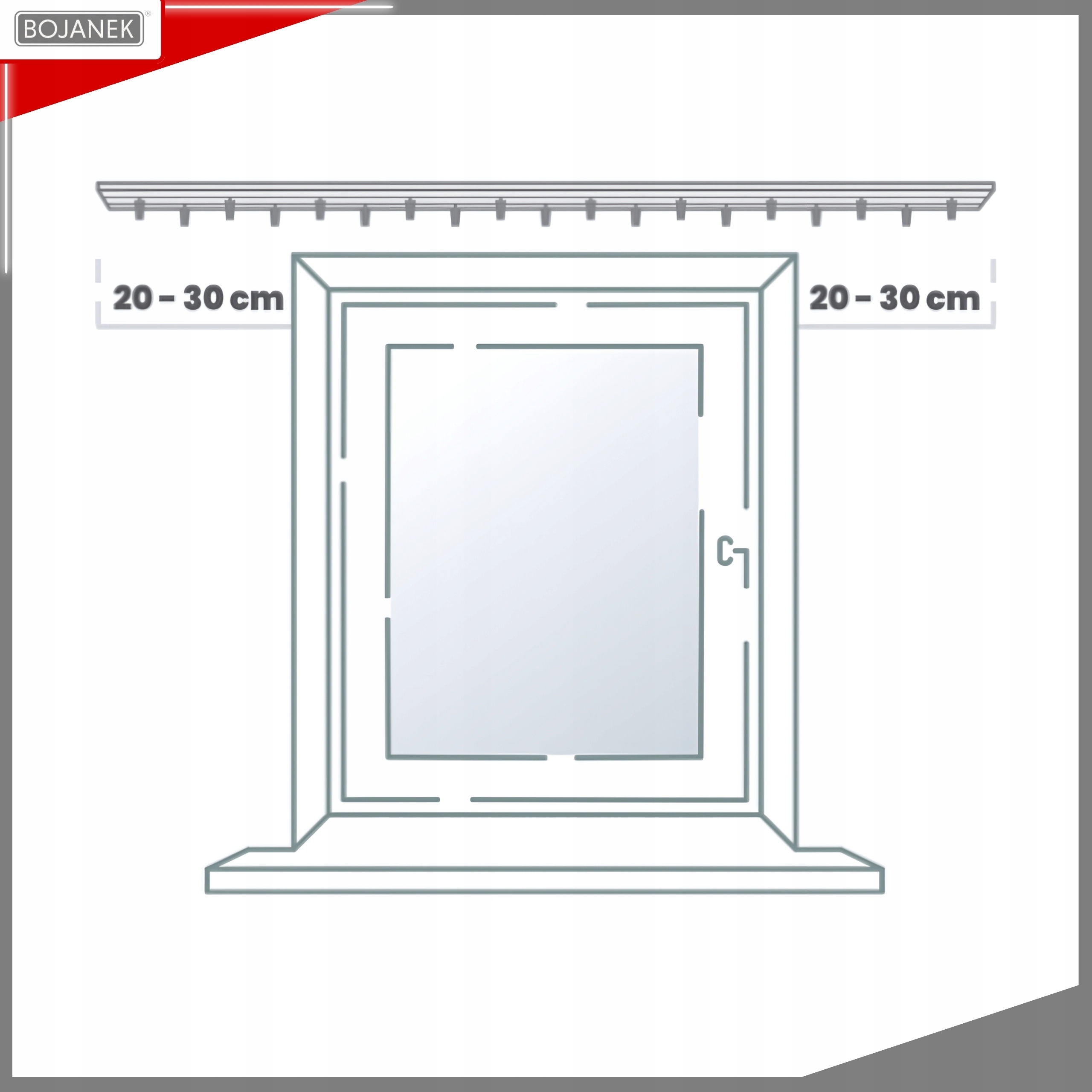 Щоб вибрати відповідний розмір стельової рейки, виміряйте ширину віконної ніші та додайте 40-60 см (по 20-30 см з кожного боку). Якщо ви хочете, щоб рейку було встановлено між двома стінами, просто виміряйте відстань між ними.