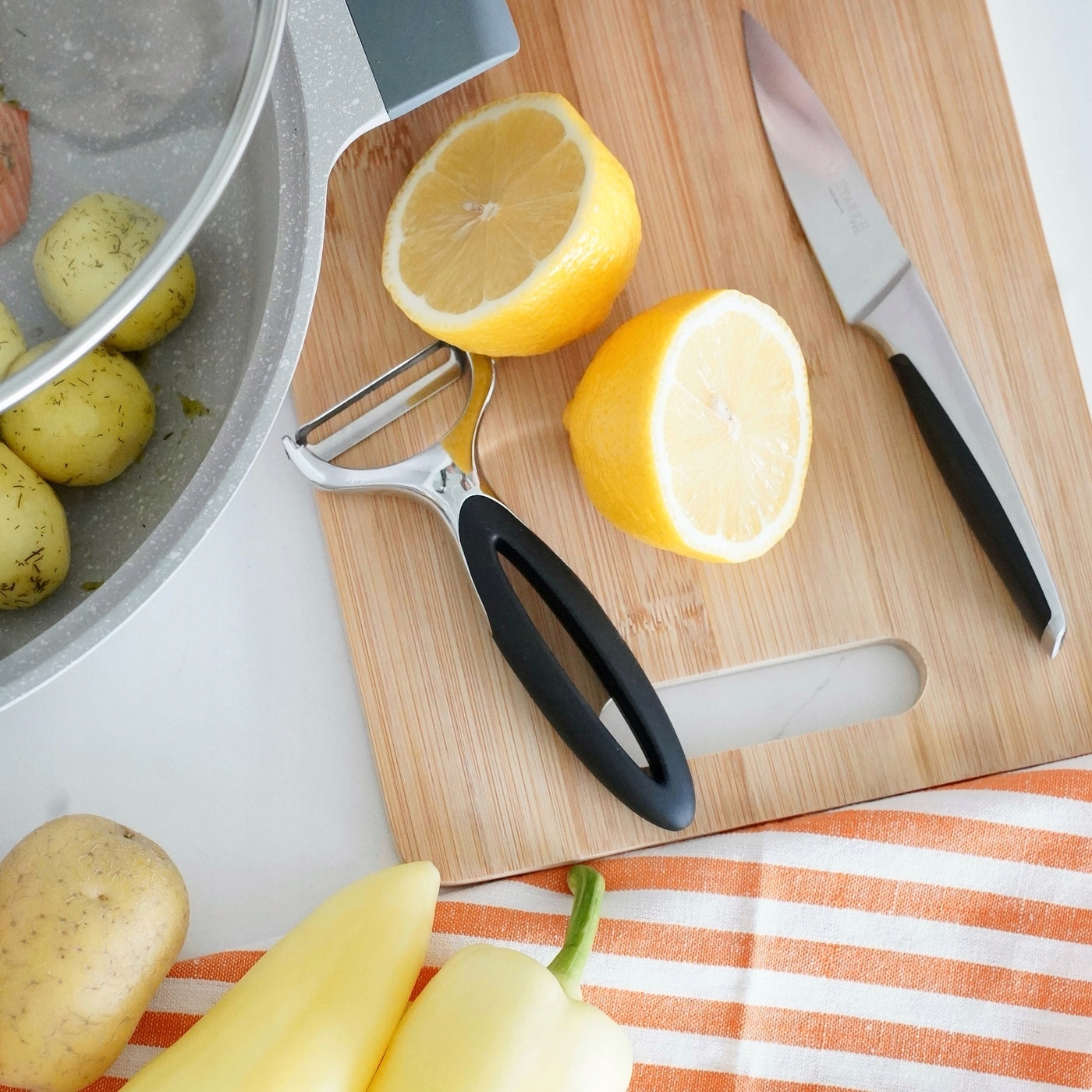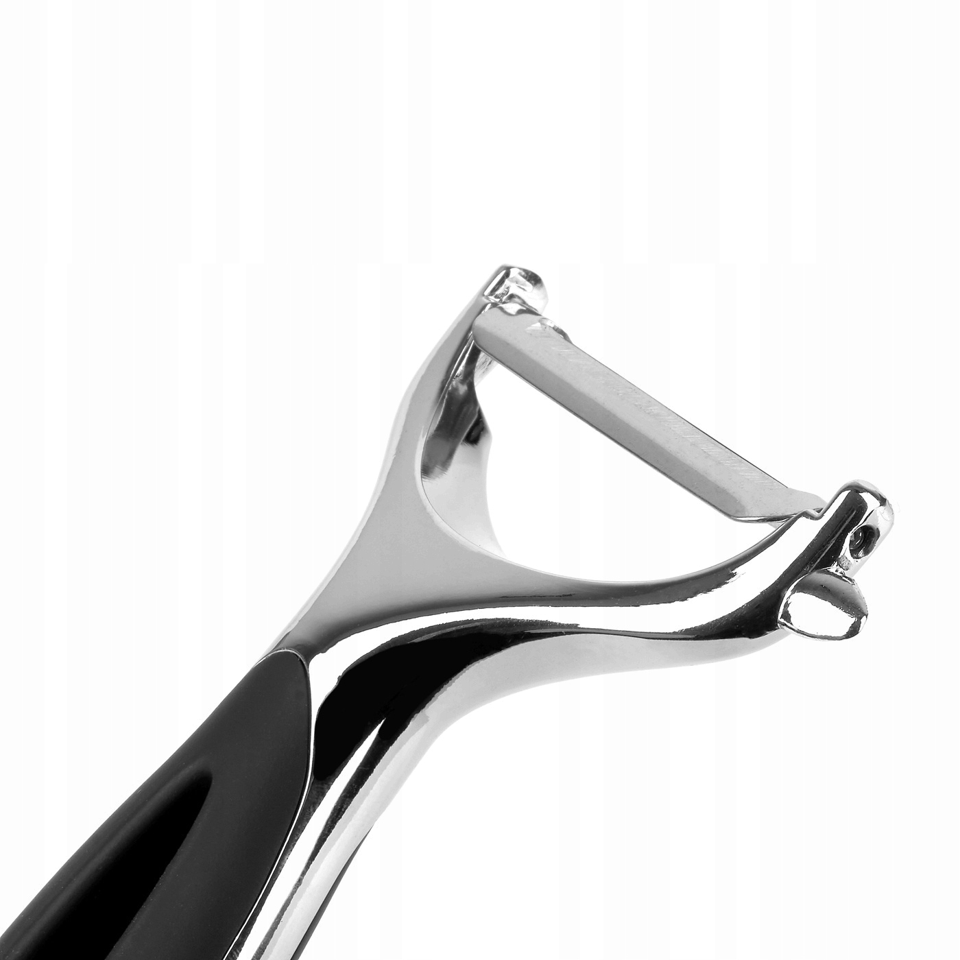 Дизайн від STARKE PRO і сучасний вигляд на основі поєднання сріблясто-цинкового сплаву та чорної поверхні, покритої протиковзким матеріалом. Якість продукту гарантує користувачеві відповідну довговічність і функціональність, оскільки він здатний впоратися навіть з товстою і твердою шкіркою (наприклад, кабачків). Значна економія часу для некваліфікованих кухарів і можливість отримати ідеальну товщину шкірки, таким чином зберігаючи багато цінних мікроелементів у фруктах і овочах.