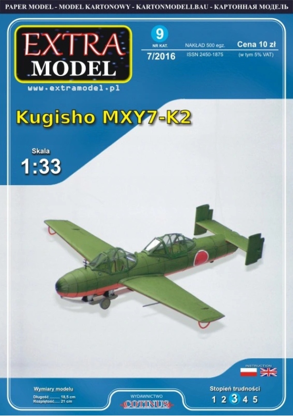 Картонна модель японського навчально-тренувального літака Kamikaze Kugisho MXY7-K2.